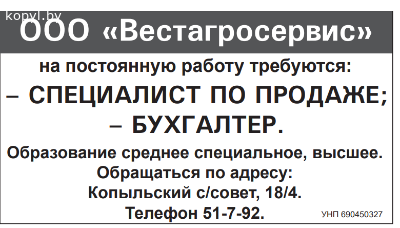 ООО «Вестагросервис» на постоянную работу требуются: