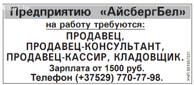 Предприятию  «АйсбергБел» на работу требуются:
