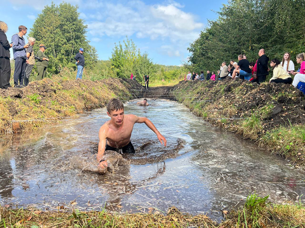 "Яма с бревнами и грязью". Любители экстрима пробираются через холодную, вязкую осеннюю грязь, перелезая через скользкие бревна. Это испытание позволяем им забыть о чистоте и полностью отдаться дикому азарту преодоления.