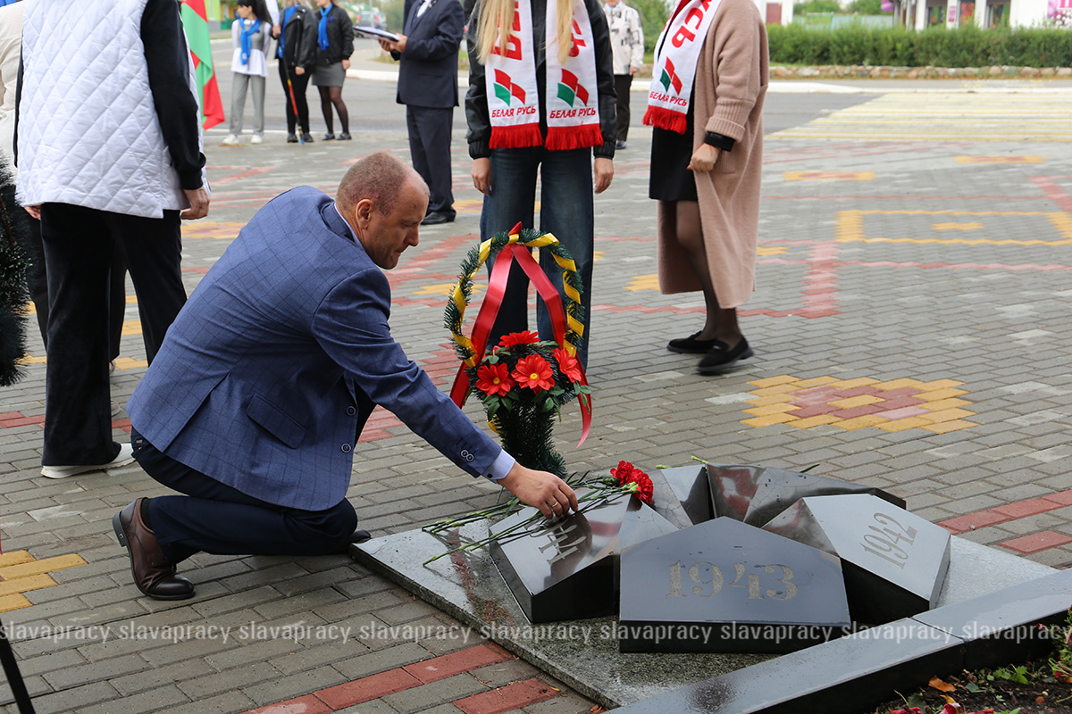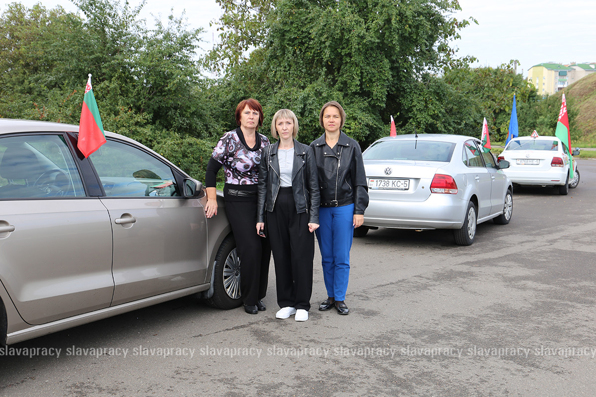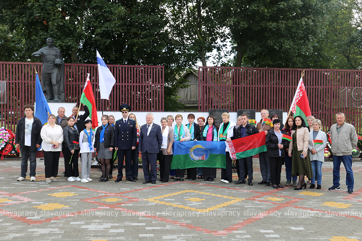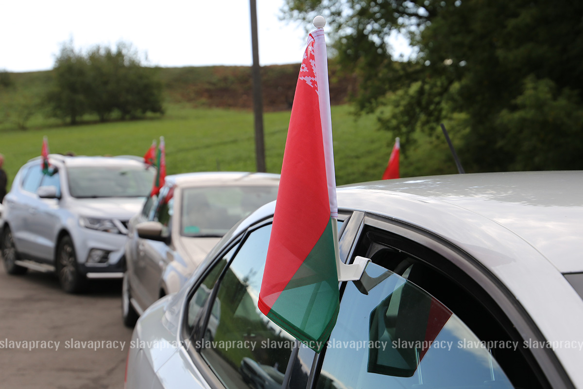 Колонна автомобилей под белорусскими флагами прошла по знаковым местам района, совершив настоящий марш-бросок по страницам истории, чтобы еще раз вспомнить героическое прошлое и подчеркнуть неразрывную связь поколений.