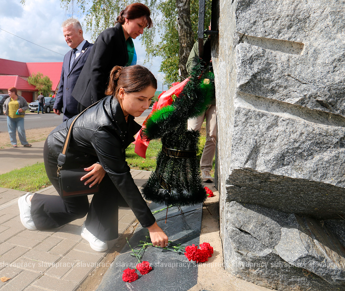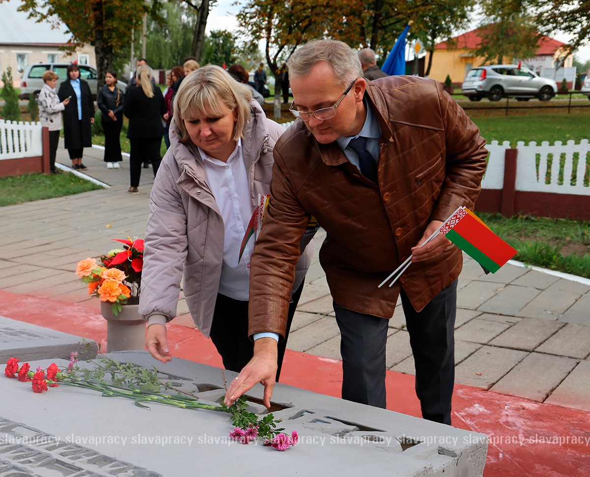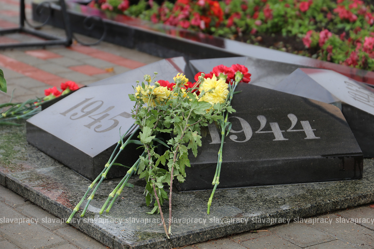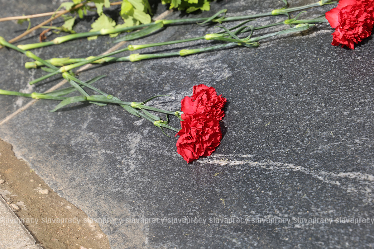 Участники мероприятия возложили цветы к подножию памятного знака и почтили память погибших минутой молчания.