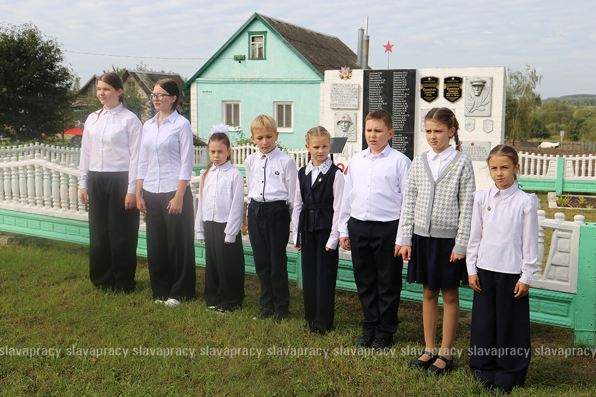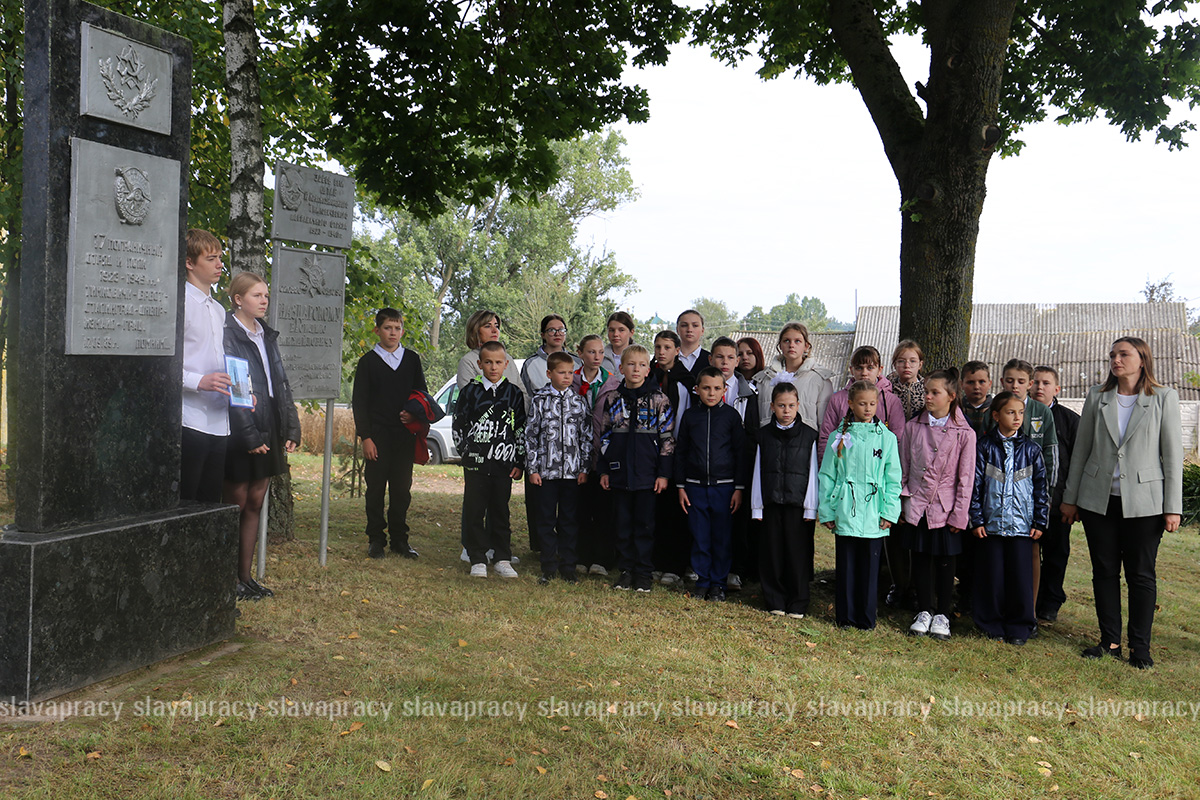 Участников автопробега встретили учащиеся Тимковичской средней школы, которые прочитали стихи и рассказали о военных событиях, которые прошли на родной земле.