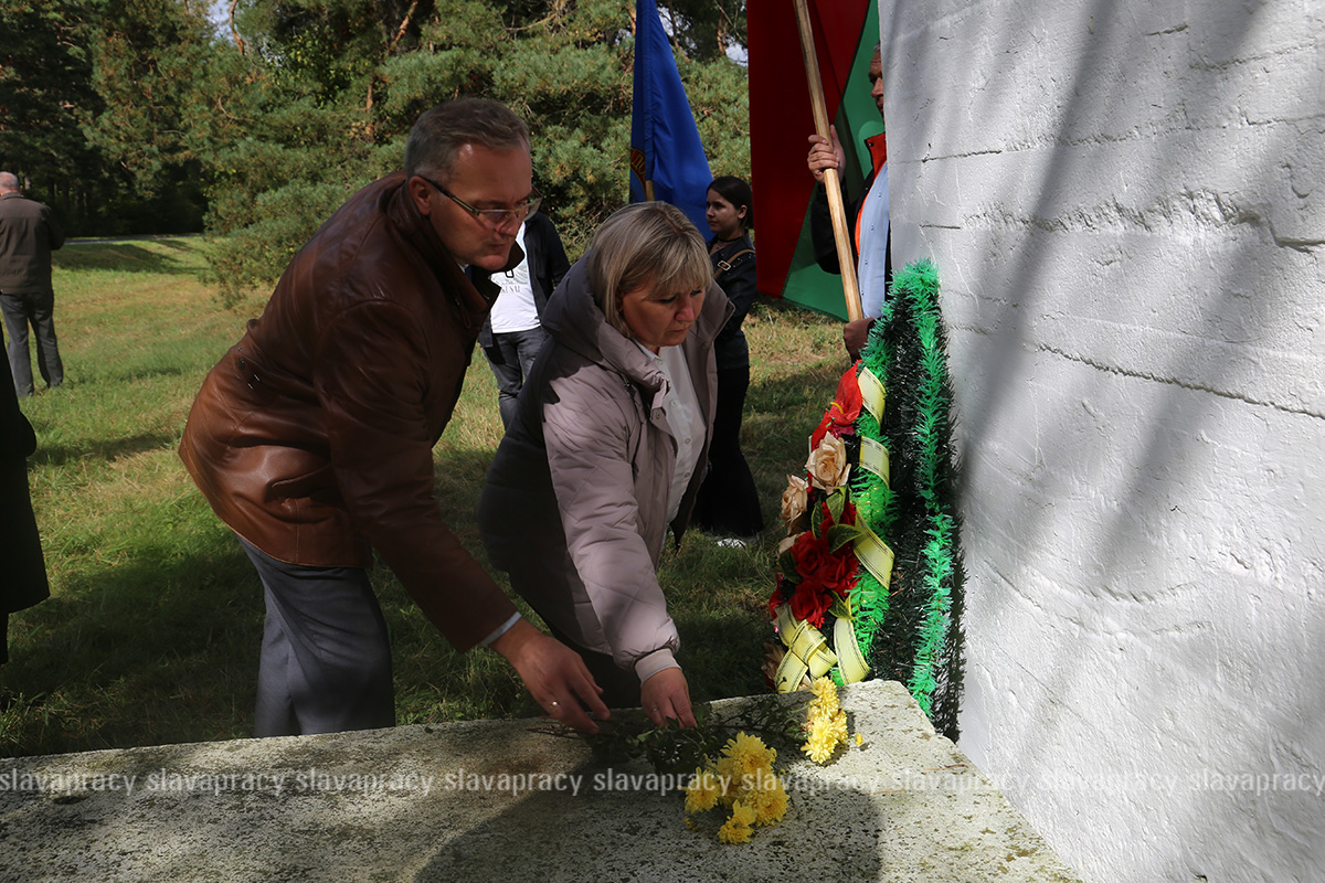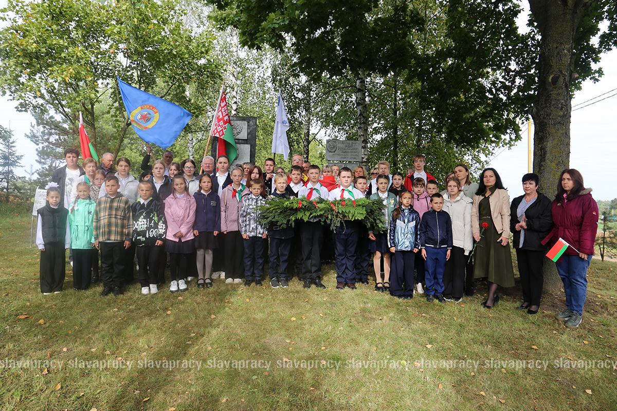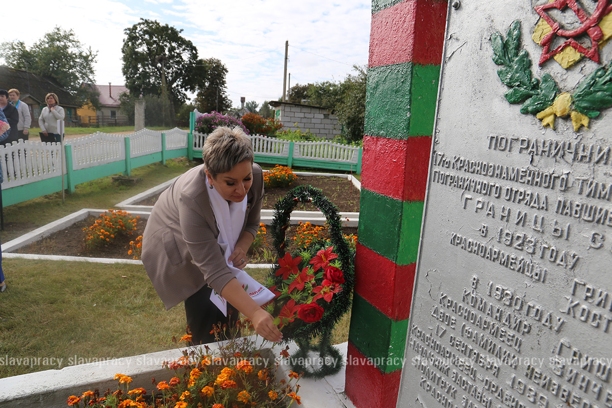 Следующей остановкой стал агрогородок Тимковичи. Здесь участники автопробега посетили место размещения штаба 17-го Краснознаменного Тимковичского погранотряда и братскую могилу погибшим воинам-пограничникам.