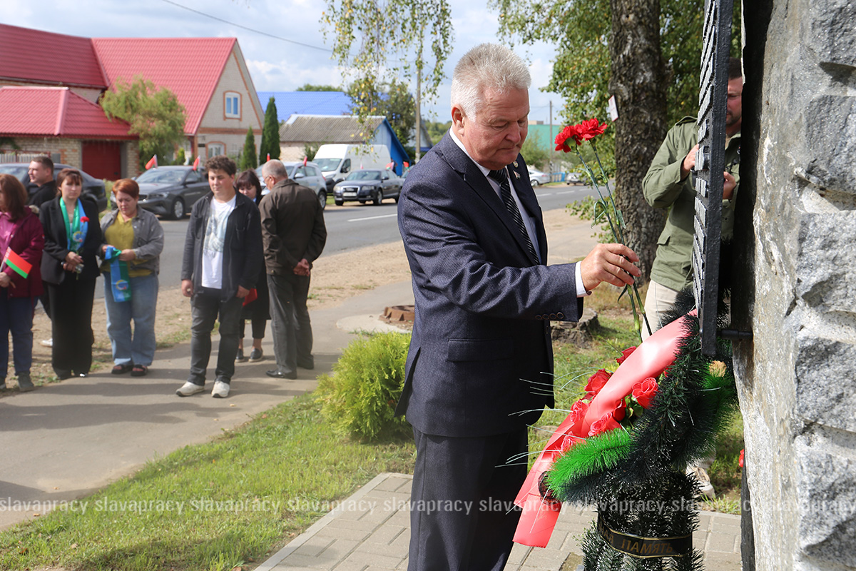Завершилось мероприятие у памятного знака воинам, погибшим при освобождении Копыля. Здесь Александр Касинский рассказал историю освобождения города.