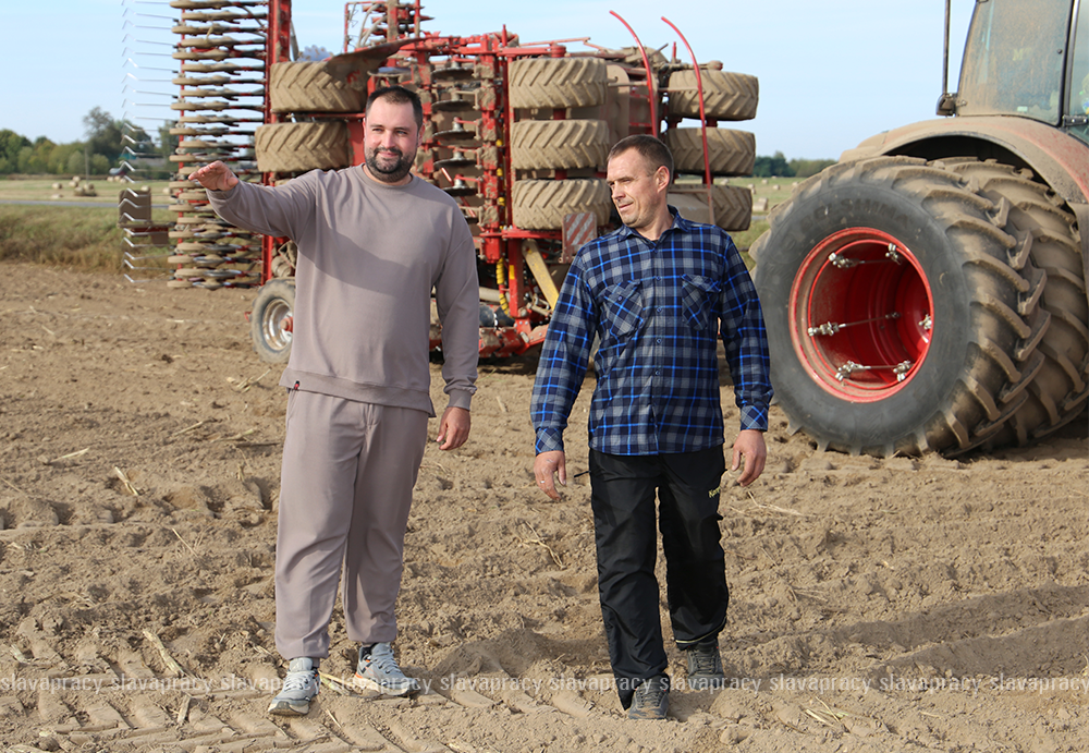 В день нашего приезда Иван Геннадьевич вместе с Александром Жогло, который отвечает за подвоз зерна, работали на посеве озимых культур на поле возле д. Васильчицы. На этом участке площадью 150 га мужчины трудятся уже третий день. Александр Анатольевич, как и его коллега, – опытный механизатор, отлично знает технику.