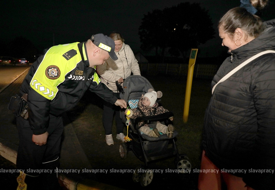 Одних слов было мало. В этот день лучшим способом заботы о безопасности была практическая помощь. Инспектор ДПС Евгений Мисюченко и младший инспектор ДПС Максим Ольшевский не только несли службу, но и общались с людьми, вручая им «светлячки».