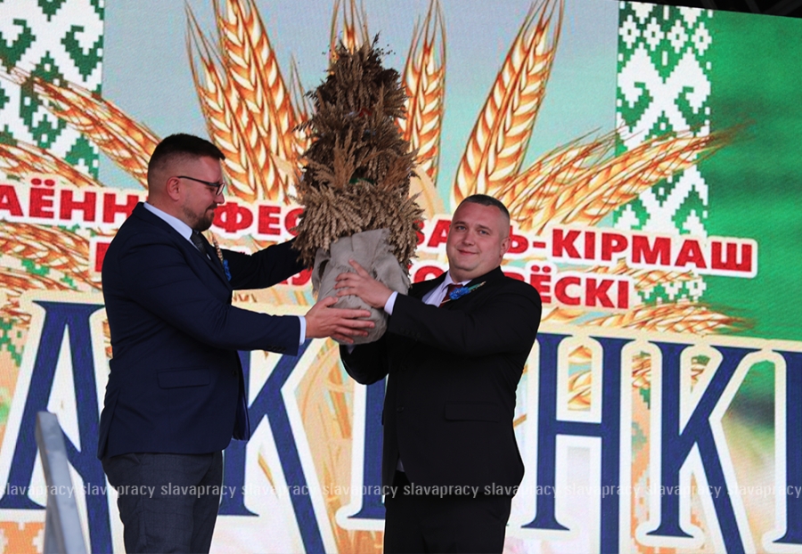 Сёлетні гаспадар свята, Іван Віктаравіч Дамашэвіч перадаў сімвал ураджаю дырэктару ААТ “Праснакі” Уладзіміру Віктаравічу Лазоўскаму!
