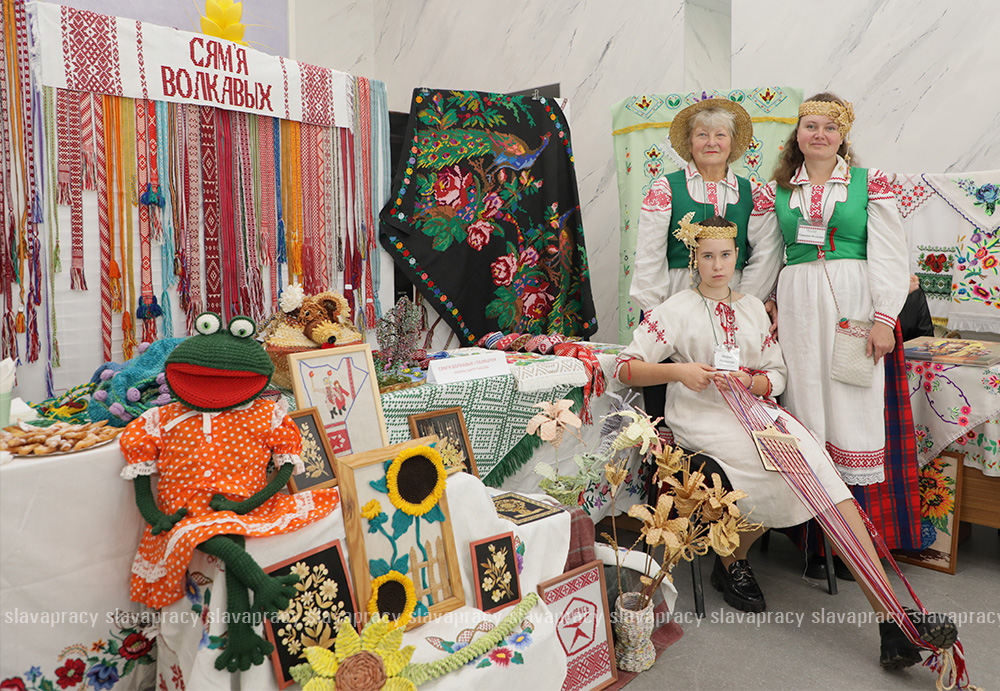 Еще до начала концерта в фойе РЦК царила оживленная атмосфера. Пока семьи готовились к выходу на сцену, жюри с интересом изучало выставки. Здесь можно было увидеть настоящие шедевры декоративно-прикладного и изобразительного искусства, созданные руками детей и родителей, а также оценить кулинарные таланты копыльских хозяюшек. Отдельное внимание привлекали презентации клубов, где каждая семья могла найти единомышленников и новое увлечение.