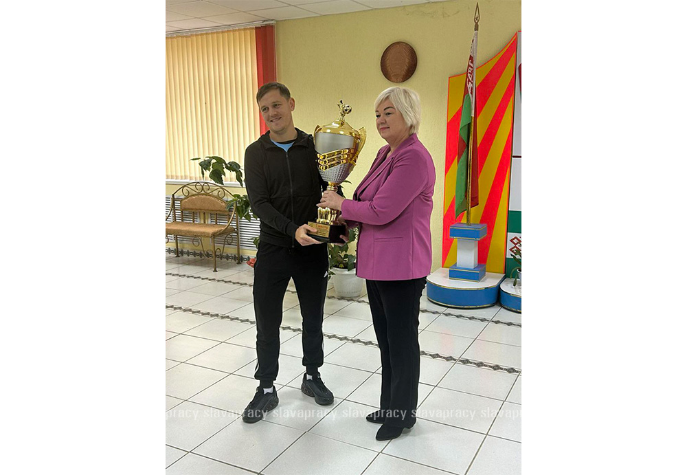Принимать поздравления и символический переходящий Кубок фестиваля спорта среди сотрудников и членов Минской областной организации БПС работников образования и науки «Будь примером!» выпало счастливому многодетному отцу Павлу Лазовскому, учителю физической культуры и здоровья Комсомольской СШ, члену областной сборной команды по мини-футболу.