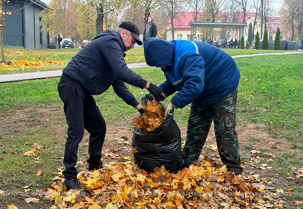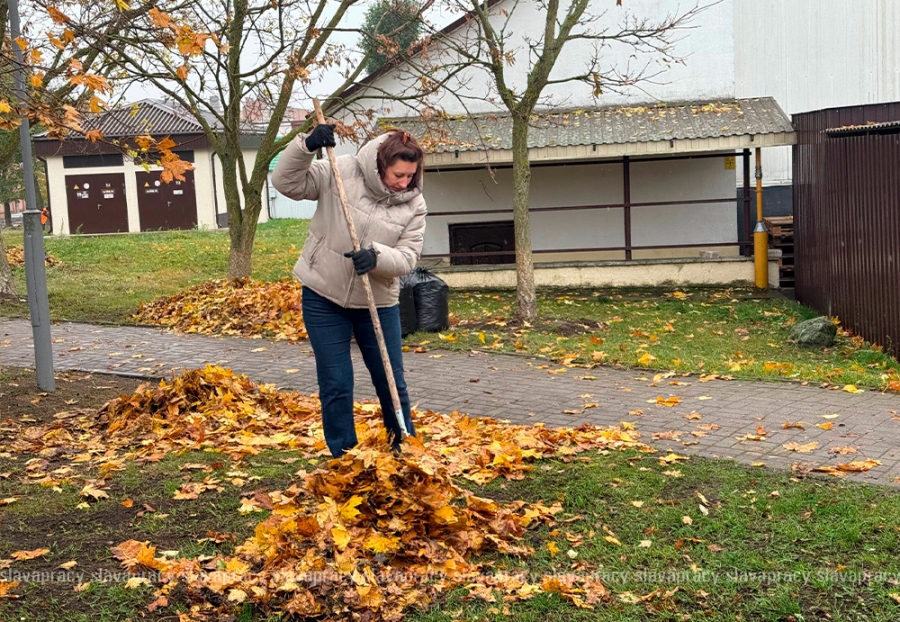 Силами коллектива была убрана прилегающая к учреждению территория: собрана опавшая листва и выметены пешеходные дорожки.
