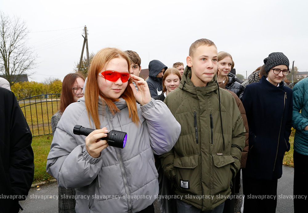 Пожалуй, самой оживленной и увлекательной для школьников оказалась практическая часть. Особый интерес вызвали техническое оснащение и передвижная криминалистическая лаборатория. Эта уникальная машина является незаменимым помощником следователей на местах происшествий. Следователь по особо важным делам криминалистического отдела УСК по Минской области Александр Красовский со знанием дела объяснил ребятам принцип работы переносного лабораторного комплекса для обнаружения следов преступления, а также наглядно показал участникам мероприятия работу квадрокоптера, применяемого в оперативно-розыскной практике.