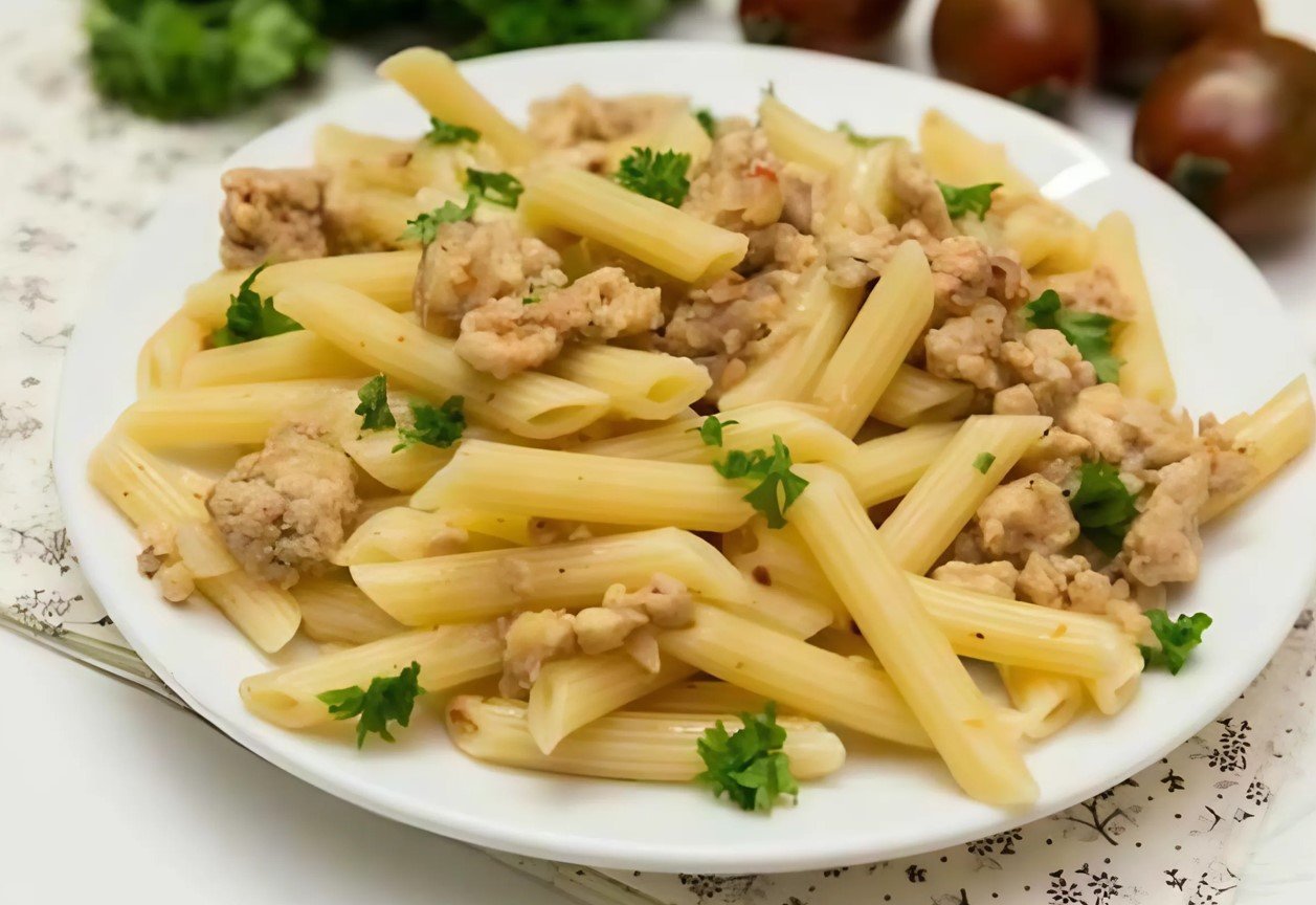 Приготовьте макароны в подсоленной воде до готовности, затем слейте воду и соедините их с фаршем из мяса и лука. Осторожно перемешайте, разложите по тарелкам и посыпьте рубленой петрушкой. Особые гурманы могут добавить кусочек сливочного масла для дополнительного вкуса.