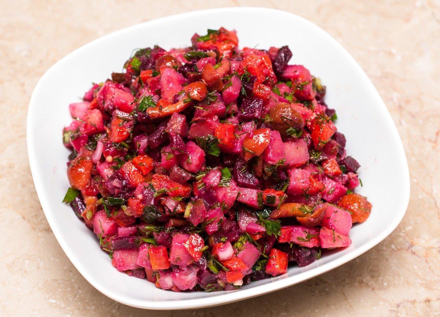 ИНГРЕДИЕНТЫ: капуста квашеная – 150 г; картошка – 3 шт.; соленые огурцы – 3 шт.; морковь – 1 шт.; свекла – 1 шт.; лук – 1 шт.; подсолнечное масло, перец черный молотый, соль – по вкусу.