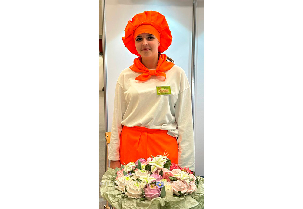 Представляет свои работы и третьекурсница Копыльского колледжа Злата Дударева. Она соревнуется в категории «Юниоры» в номинации «Цветы из зефира».