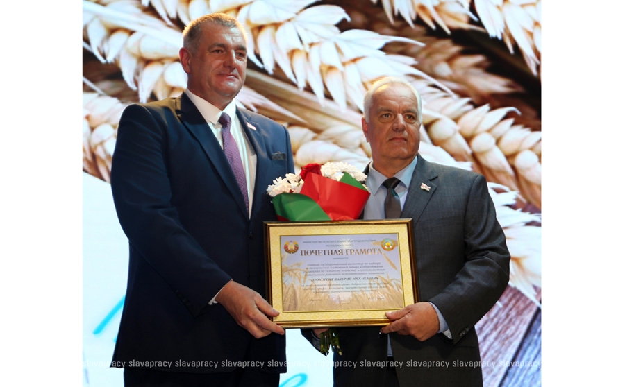 Центральным событием мероприятия стала церемония чествования. За многолетнюю плодотворную, добросовестную работу, высокий профессионализм, значительный личный вклад в развитие агропромышленного комплекса Почетной грамоты Министерства сельского хозяйства и продовольствия Республики Беларусь удостоен главный государственный инспектор по надзору за техническим состоянием машин и оборудования управления по сельскому хозяйству и продовольствию Копыльского райисполкома Валерий Прохореня.