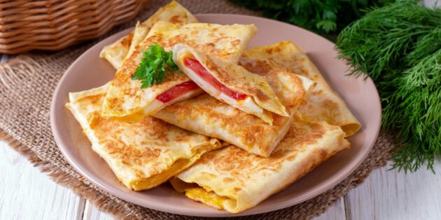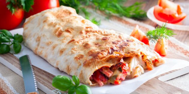 8. Пирог из лаваша с колбасой, сыром и помидорами