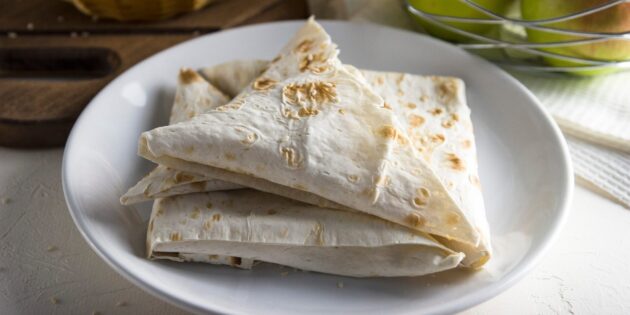 - Из 3–4 тонких лавашей вырежьте круги диаметром 20–22 см.