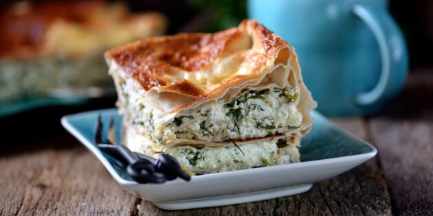 - Приготовьте начинку: смешайте 500 г обезжиренного творога, 300 г тертого сыра, пучок рубленого укропа и соль.