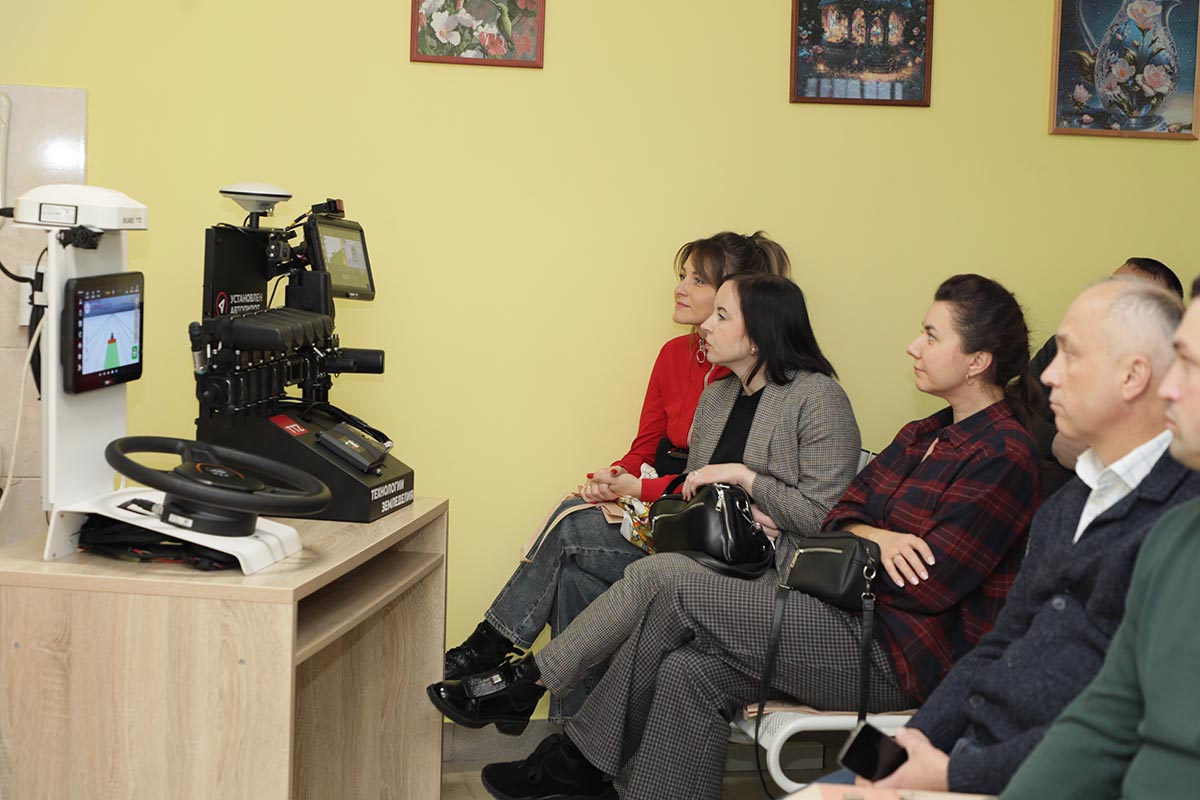 Ключевым элементом занятия стал выезд в полевые условия, где состоялась наглядная демонстрация работы сельскохозяйственной техники. Заместитель директора по растениеводству УП «ПИК-Лесное» Александр Купревич и Валентин Жарин организовали сравнительный показ работы трактора с системой автоматического вождения и без нее.