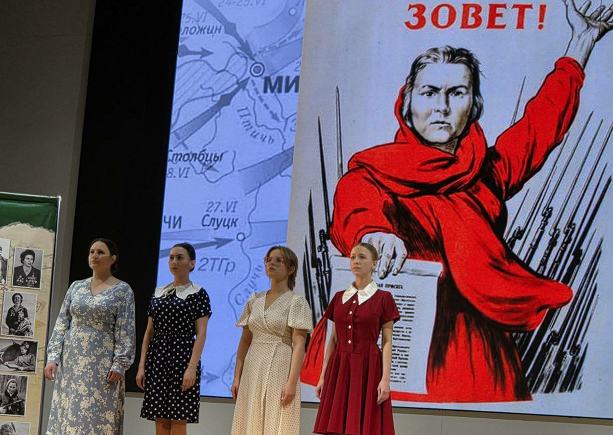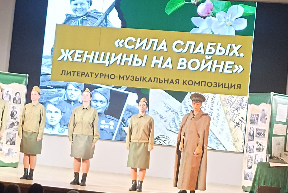 Им была представлена глубоко трогательная литературно-музыкальная композиция «Сила слабых. Женщины на войне» в исполнении коллектива гимназии №10 г. Молодечно.
