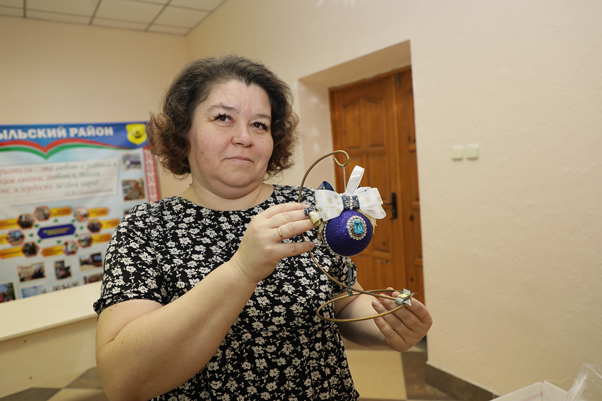 – Все просто: основа обматывается, обклеивается, украшается, – с улыбкой говорит Татьяна Михайловна. – Ленты создают фактуру, бисер добавляет искристые акценты. Главное – дать волю воображению. Такой шар можно не только повесить на елку как главное украшение, но и преподнести в качестве изящного сувенира близким, как частички вашей заботы и тепла.