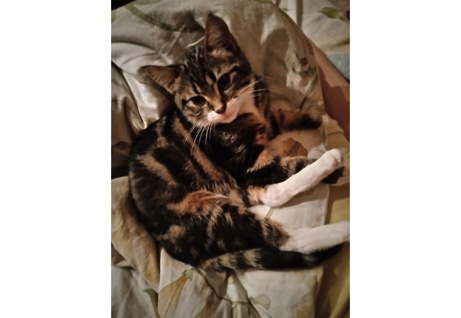 Эля мой любимый четвероногий друг. Эля, как и Карамеля, трехцветная. Характер у нее особенный. Если она хочет, чт бы ее погладили, подойдет, не будет кусать, но на меня это не распространяется.