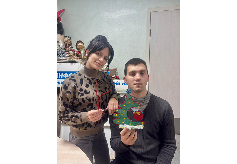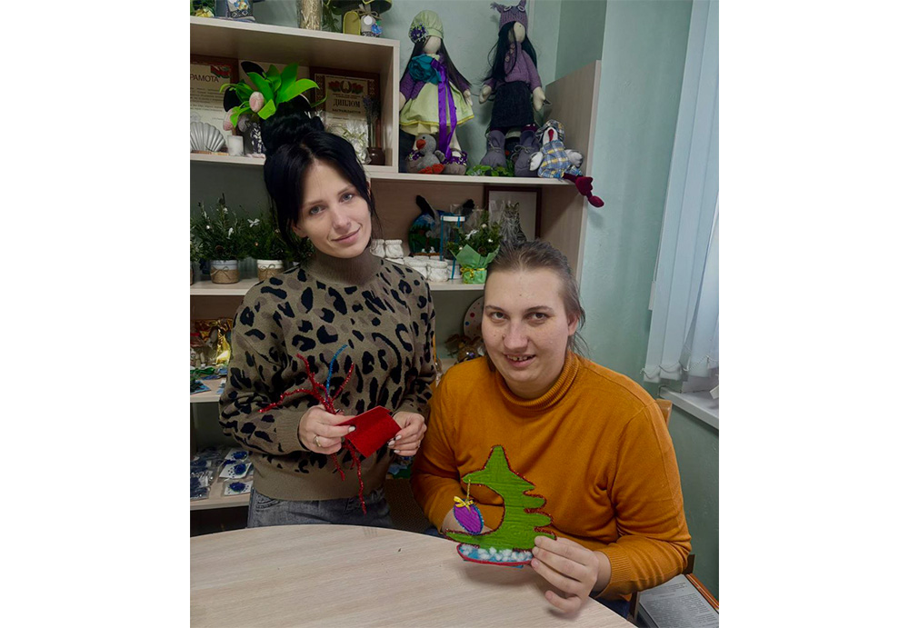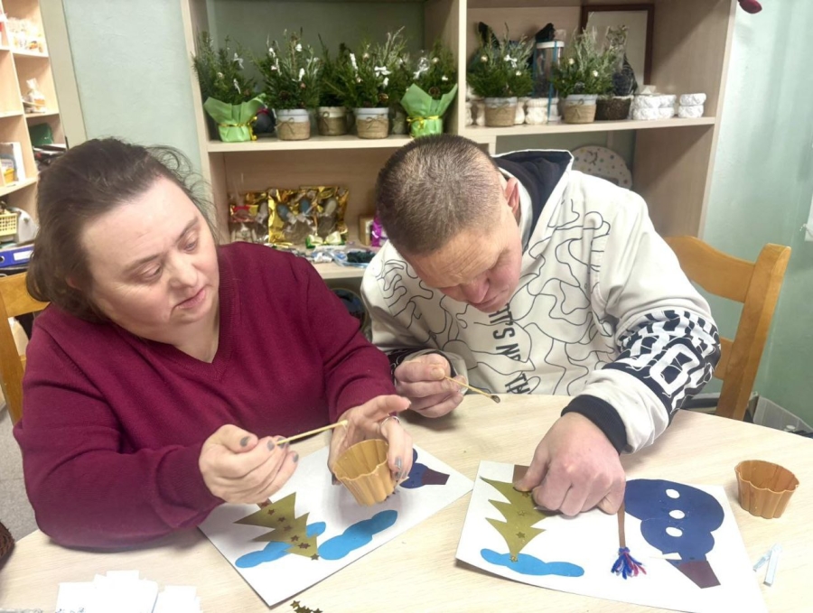 Кроме того, посетителям отделения предлагаются увлекательные занятия в творческих мастерских. Так, участники кружка «Арт-бутик» занимаются созданием уникальных сувениров из синильной проволоки, изготавливая очаровательную новогоднюю елочку. А члены кружка «Фантазия» трудятся над созданием ярких новогодних аппликаций.