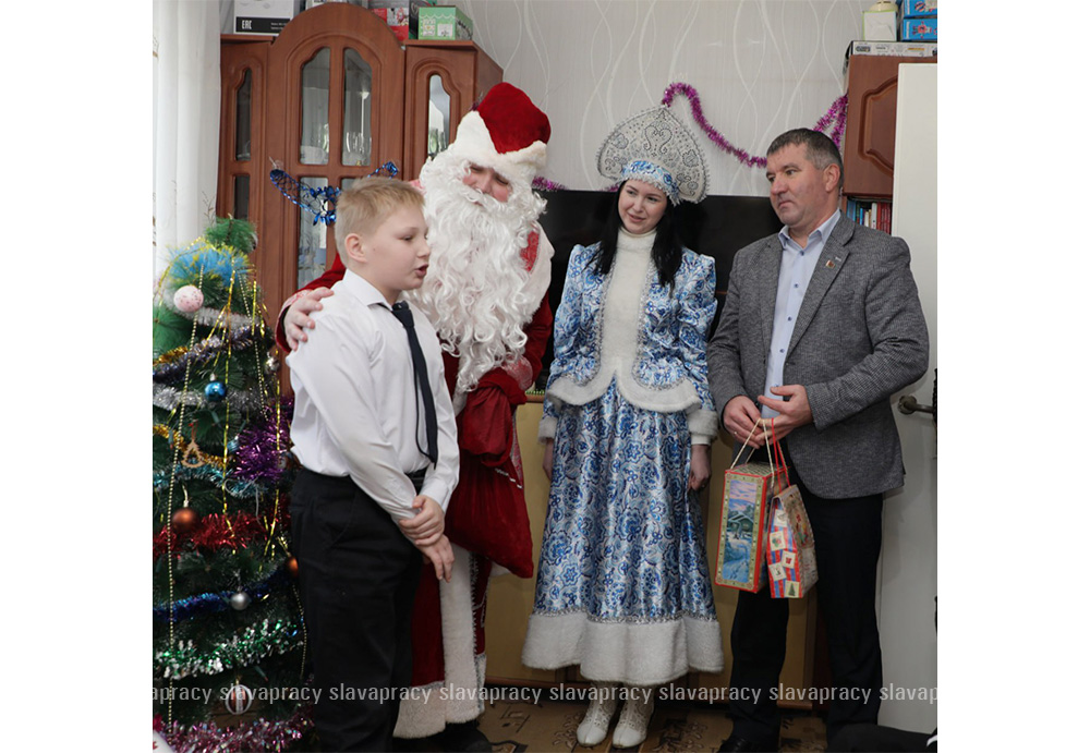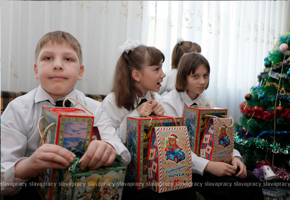Первыми, кто радушно встретил гостей, стали воспитанники детского дома семейного типа Татьяны Каленчиц. Здесь ребята получили заветные подарки от гостей, в том числе и от руководства «Приорбанка».