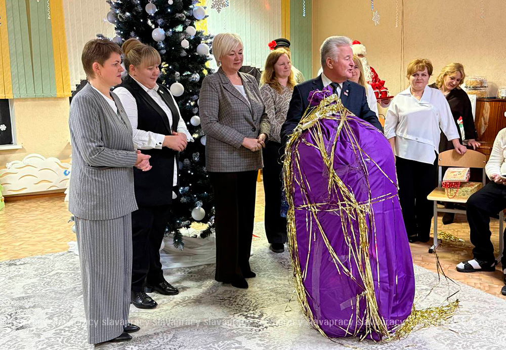 Каждый ребенок получил долгожданный сладкий подарок от гостей. Но на этом сюрпризы не закончились! Александр Иванович примерил на себя роль «второго Деда Мороза» — он передал центру необходимые принадлежности, которые помогут сделать процесс обучения и реабилитации еще комфортнее и эффективнее.