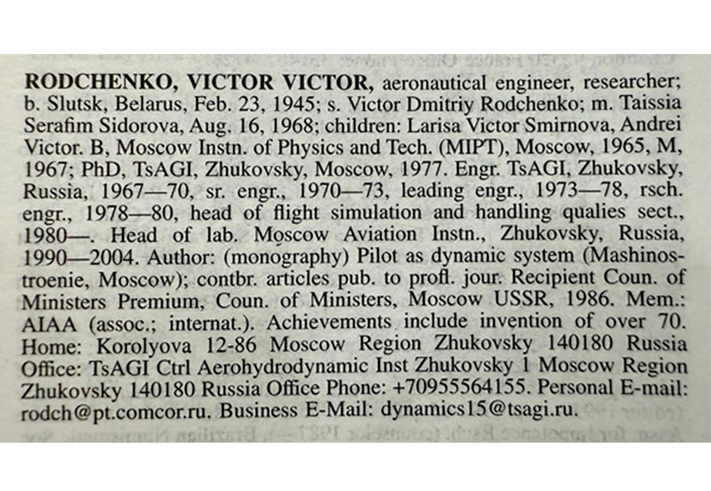 Имя Виктора Родченко известно не только в России, но и далеко за ее пределами. Он занимался экспериментальными и теоретическими исследованиями устойчивости и управляемости самолетов, создавал новые критерии управляемости, исследовал влияние человеческого фактора. В составе авторского коллектива он был удостоен премии Совета Министров СССР за создание современной экспериментальной базы для отрасли.