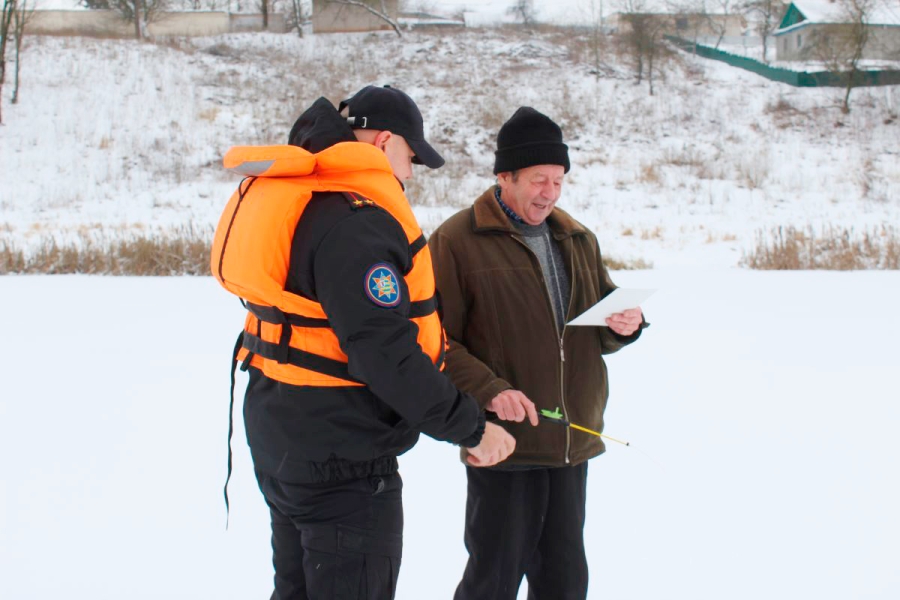 - Вместе мы напоминаем любителям зимней рыбалки о том, что запрещается выход на ледовое покрытие поверхностных водных объектов в периоды образования или разрушения ледового покрытия, а также при недостижении толщины кристаллического ледового покрытия 7 сантиметров для одного человека, - рассказывает инспектор СПиВО Копыльского РОЧС Татьяна Шестакова. – В конце беседы мы всем вручили тематические памятки. Поэтому напомню правила безопасности: