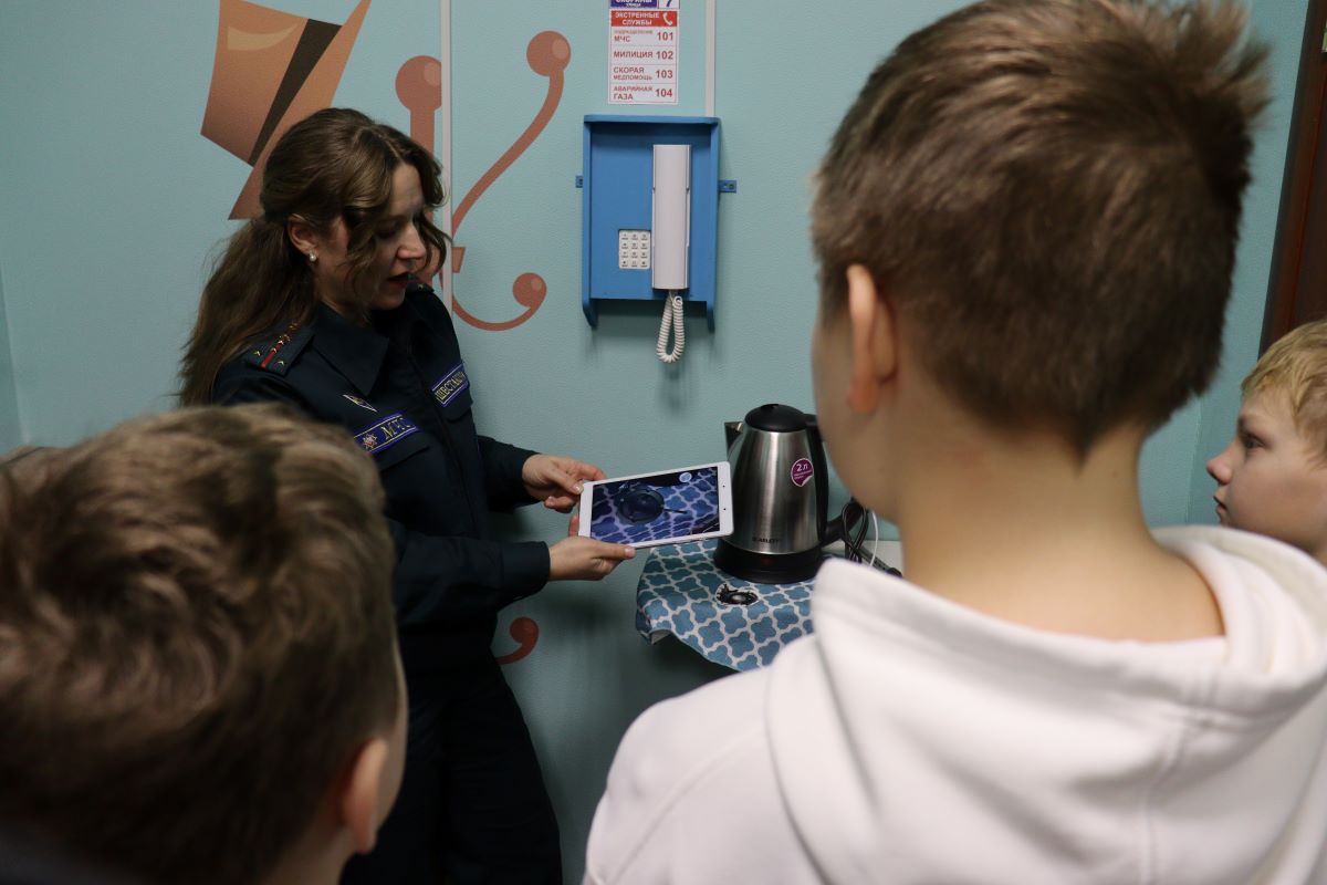 Далее, с помощью технологий дополненной реальности участники мероприятия увидели, к каким последствиям может привести перегрузка розеток, оставленный без присмотра утюг, утечка газа или незакрытый огонь в печи.