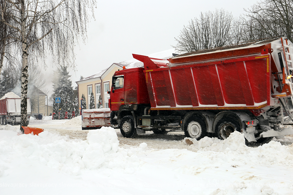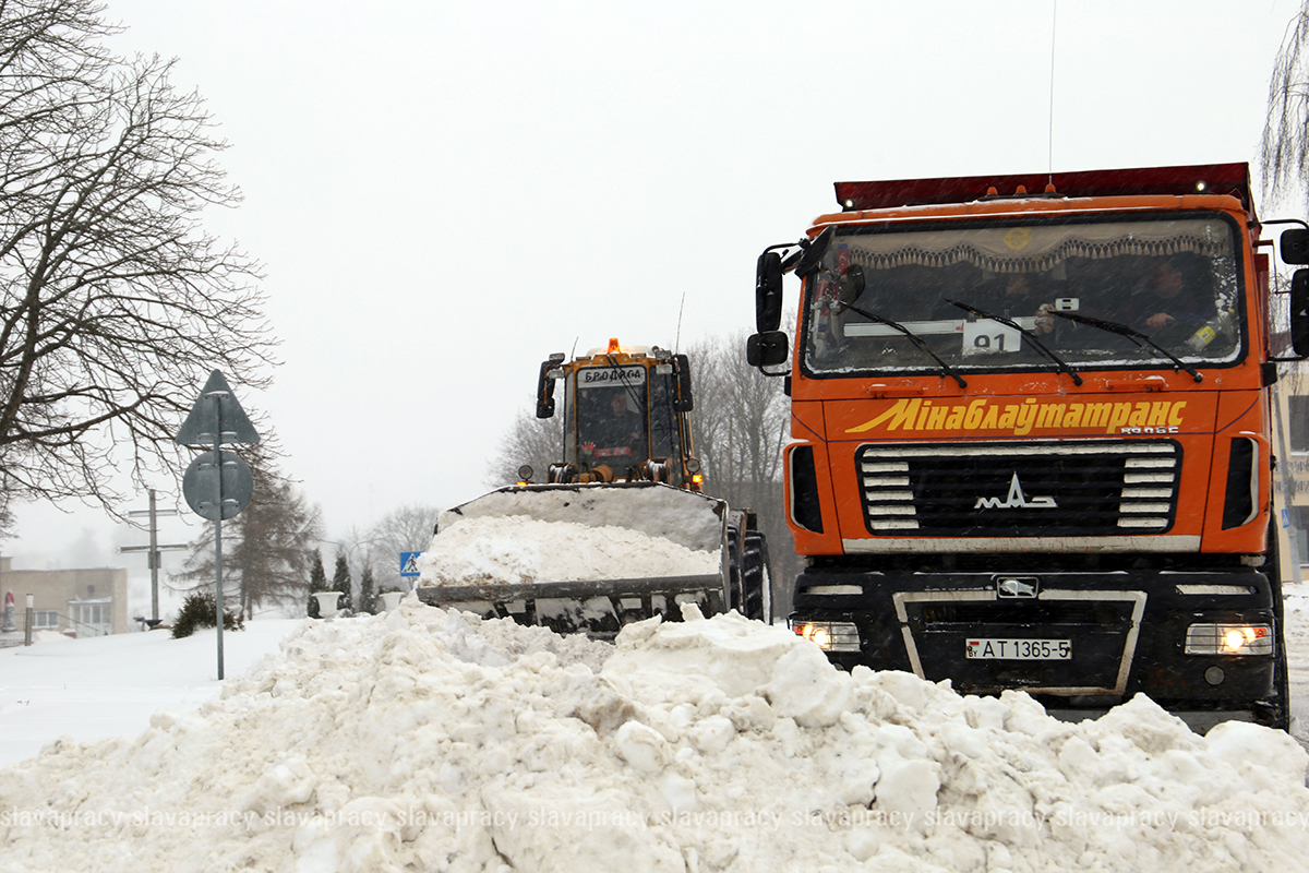 Груженые МАЗы курсируют по улицам, освобождая улицы от накопившихся сугробов.