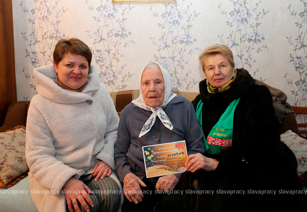 С подарками и искренними пожеланиями в гости заглянули заместитель председателя райисполкома Ирина Юхо и председатель районного совета ветеранов Людмила Каменко.