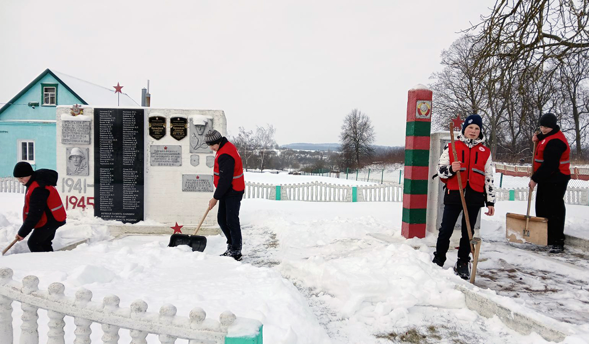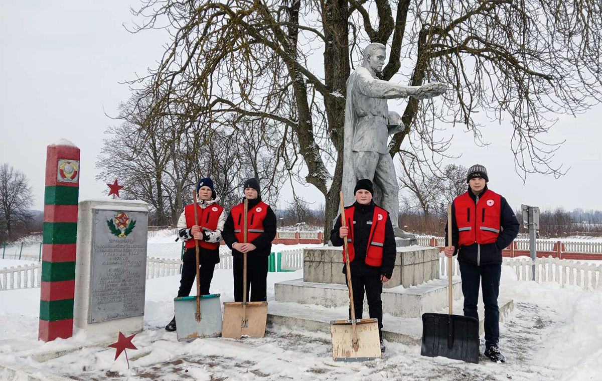 Параллельно члены волонтерского отряда «Данко» провели работу по благоустройству, расчистив от снега памятник.