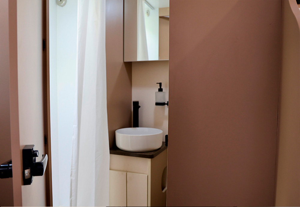 - Удобства: полноценный санузел с душем, туалетом и даже встроенной вытяжной нитью для сушки одежды.