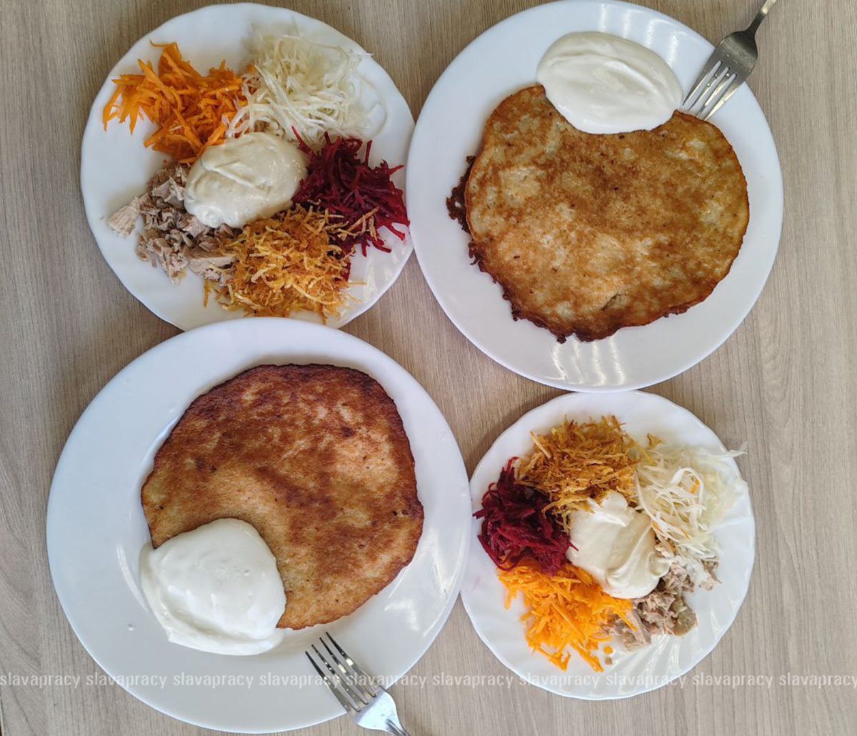 Галоўным героем дзённага меню стаў сапраўдны кулінарны сімвал нашага рэгіёна - «Дранік цэнтральнага рэгіёна» са смятанай.
