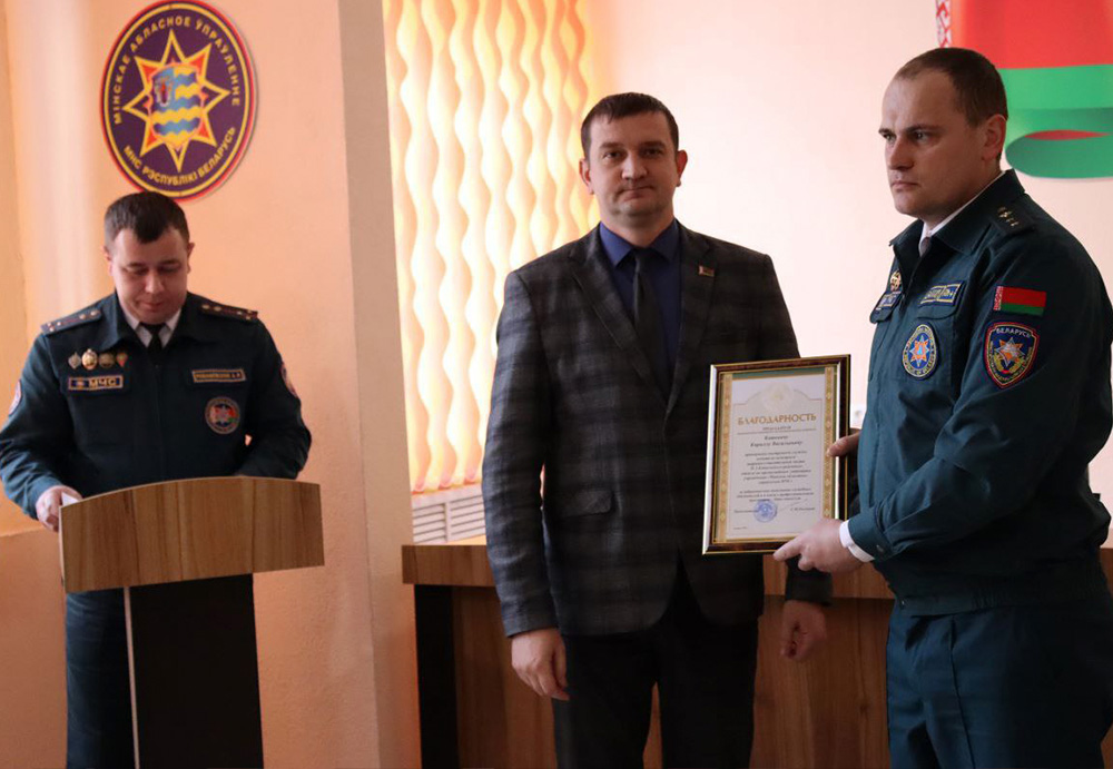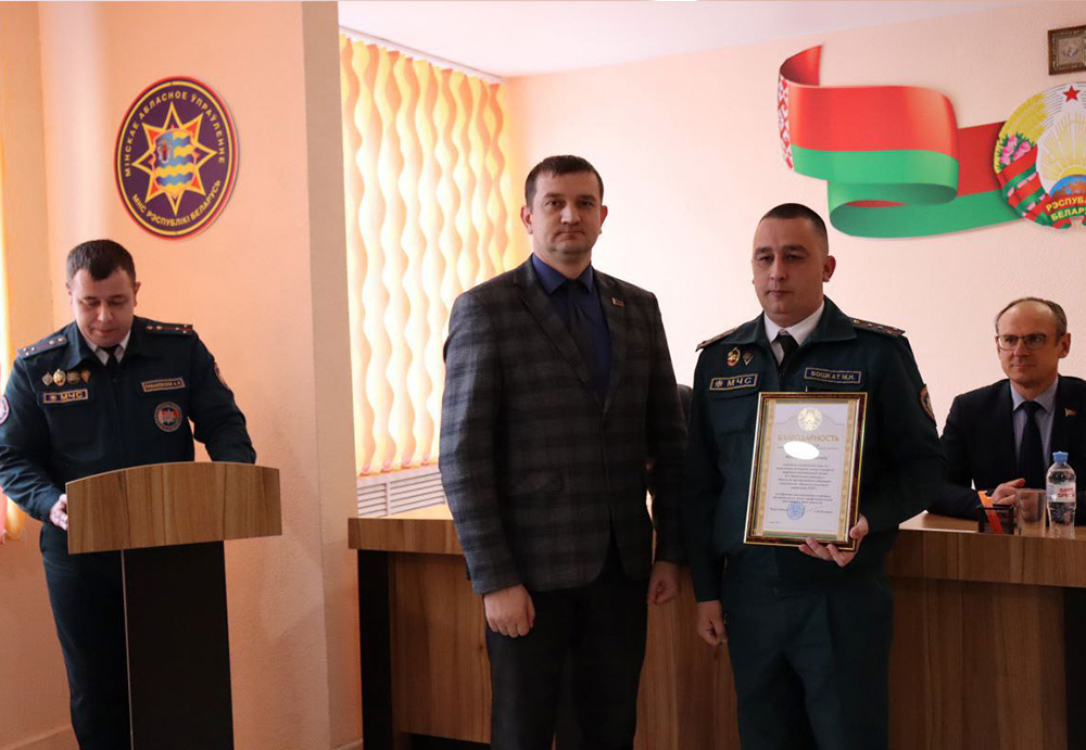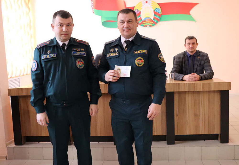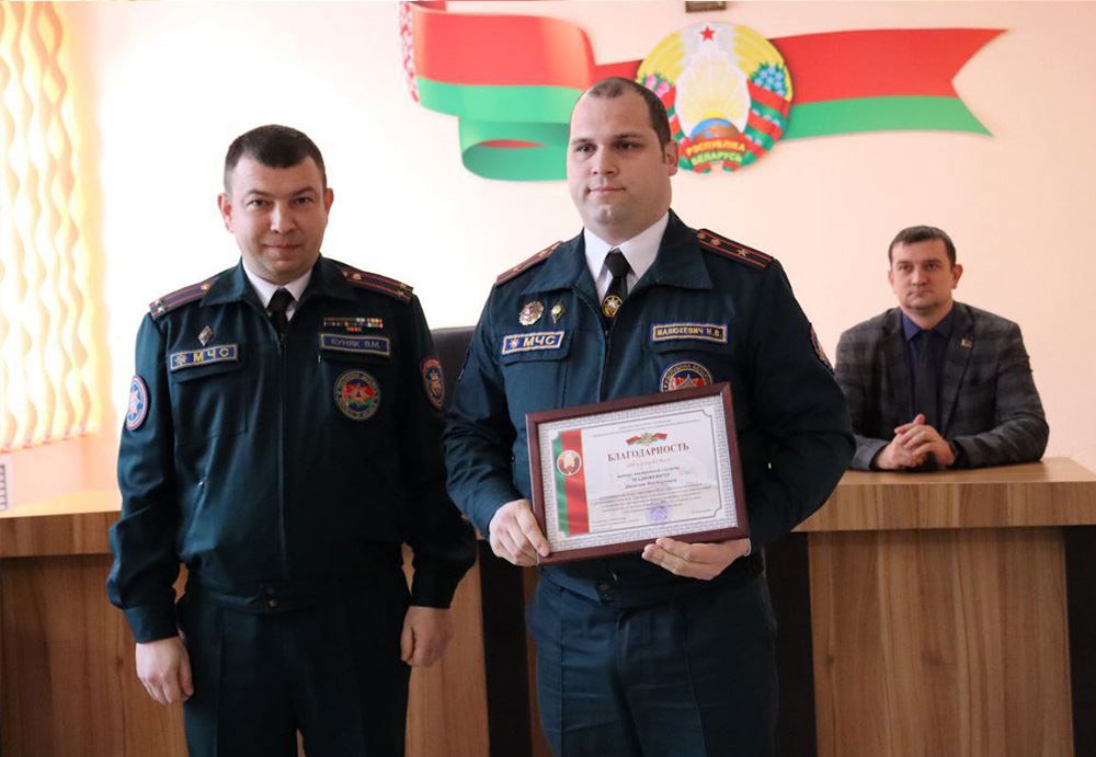 - Благодарность начальника учреждения «Минское областное управление» объявлена майору внутренней службы Николаю Малюкевичу, начальнику ПАСЧ № 1, старшему сержанту внутренней службы Александру Казаку, мастеру-спасателю ПАСЧ № 2.