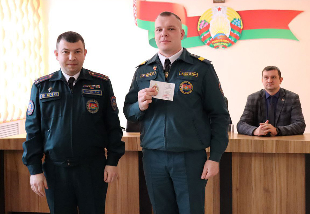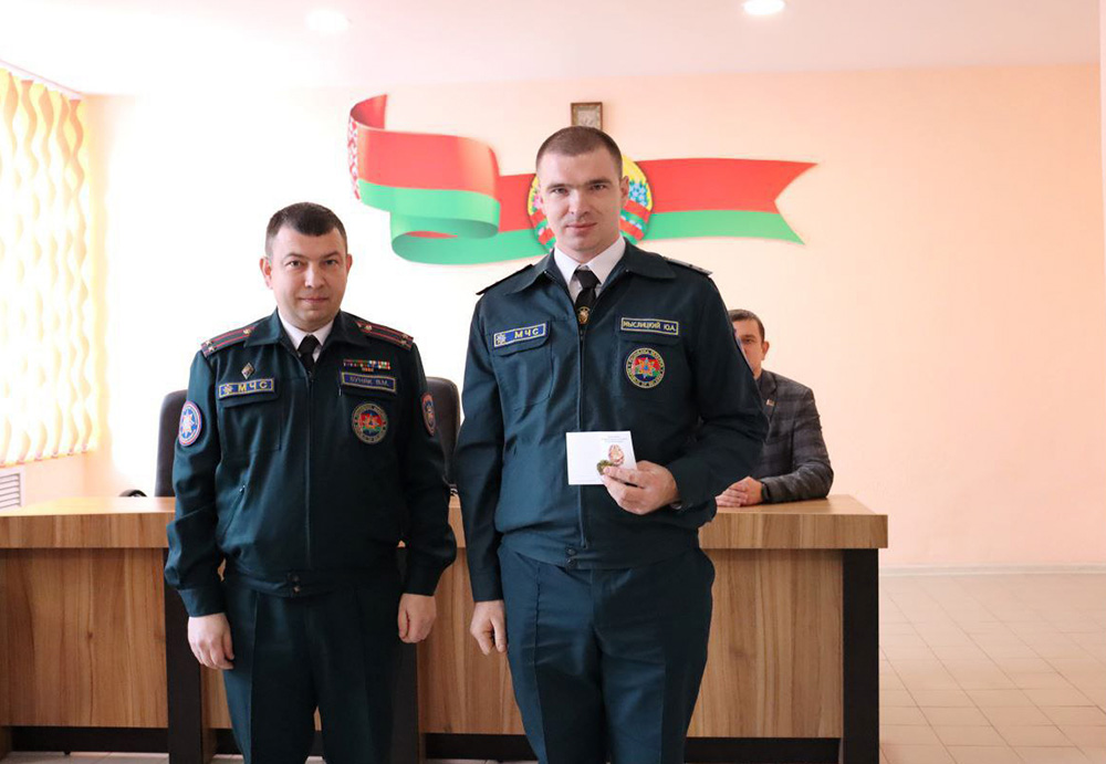 - Нагрудным знаком «Выдатнік» награждены прапорщик внутренней службы Юрий Качан, водитель ПАСП № 11, прапорщик внутренней службы Юрий Мыслицкий, мастер-спасатель ПАСЧ № 1.