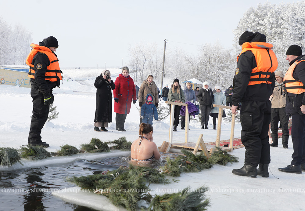 На пляже волонтеры ОО «БРСМ» и РОО «Белая Русь» раздавали людям горячий чай, создавая особую, теплую атмосферу. Рядом Копыльский РОЧС организовал утепленную палатку для переодевания, а для обеспечения безопасности дежурила бригада скорой помощи.