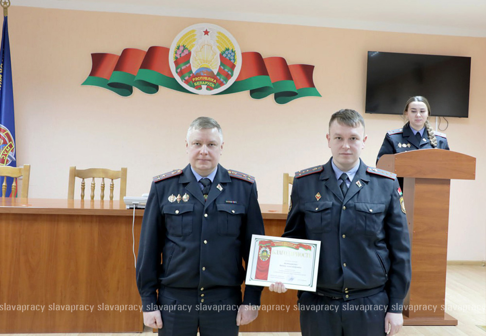 - Грамотой УВД Миноблисполкома награждены майор милиции Инна Вербило – начальник ИДН; майор милиции Михаил Млынарчик – временно исполняющий обязанности по должности начальника отдела охраны правопорядка и профилактики милиции общественной безопасности; капитан милиции Эдуард Шашкин – участковый инспектор милиции отдела охраны правопорядка и профилактики милиции общественной безопасности;
