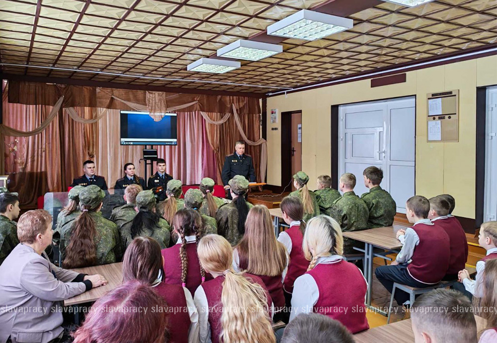 Мероприятие по профориентации провели начальник районного отдела внутренних дел полковник милиции Виталий Кажуро (выпускник этой же школы), курсант Академии МВД, сотрудники по кадрам и сотрудниками отделения ГАИ.