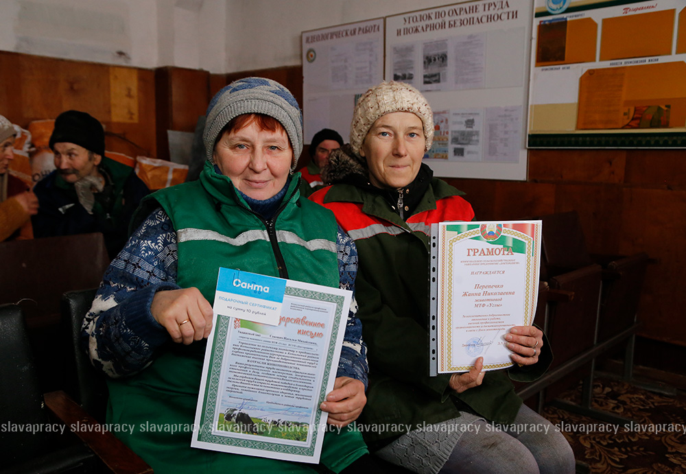 Благодарственные письма за безупречное исполнение служебных обязанностей, высокий профессионализм, отличную организацию труда и преданность делу, а также денежные сертификаты от райкома профсоюза работников АПК были вручены работникам МТК «Центр», МТФ «Горностайлово», «Углы» и «Ужа». Среди них – Виталий Щербаченя, Оксана Хмель, Игорь Коробейко, Сергей Алиновский, Диана и Елена Монак, Татьяна Левко, Анна Давидович, Наталья Сакович и Наталья Лемеза.
