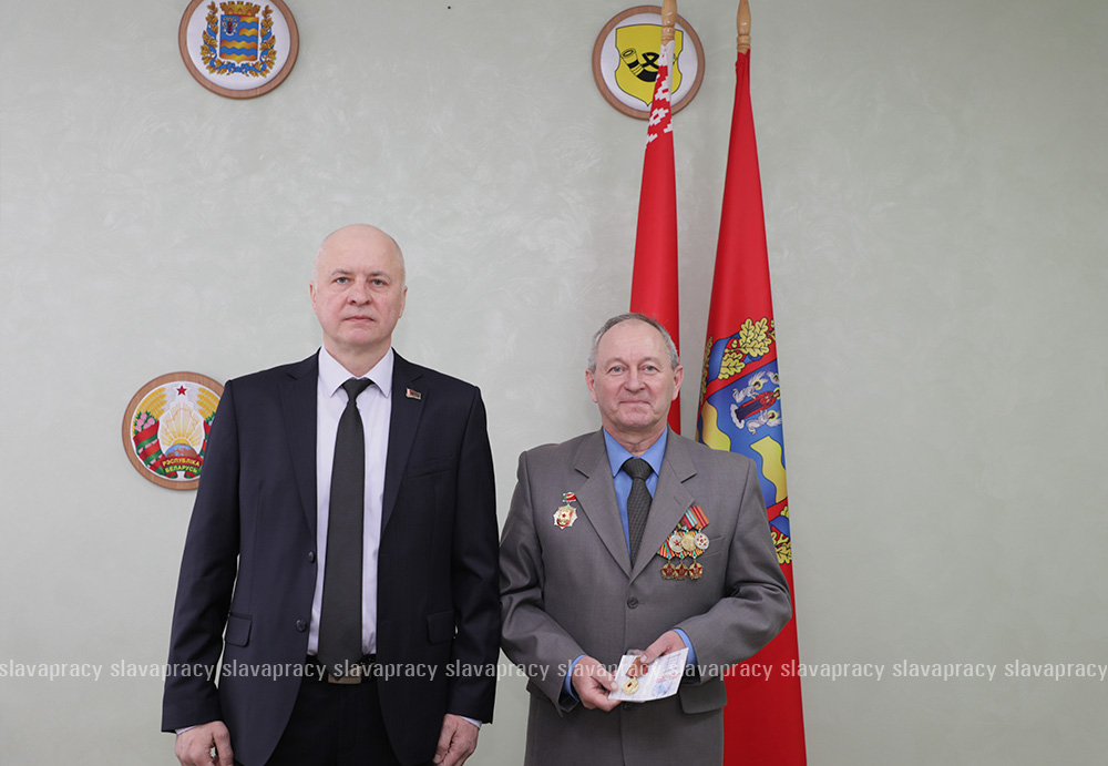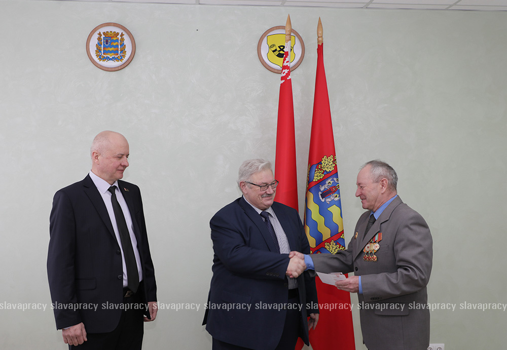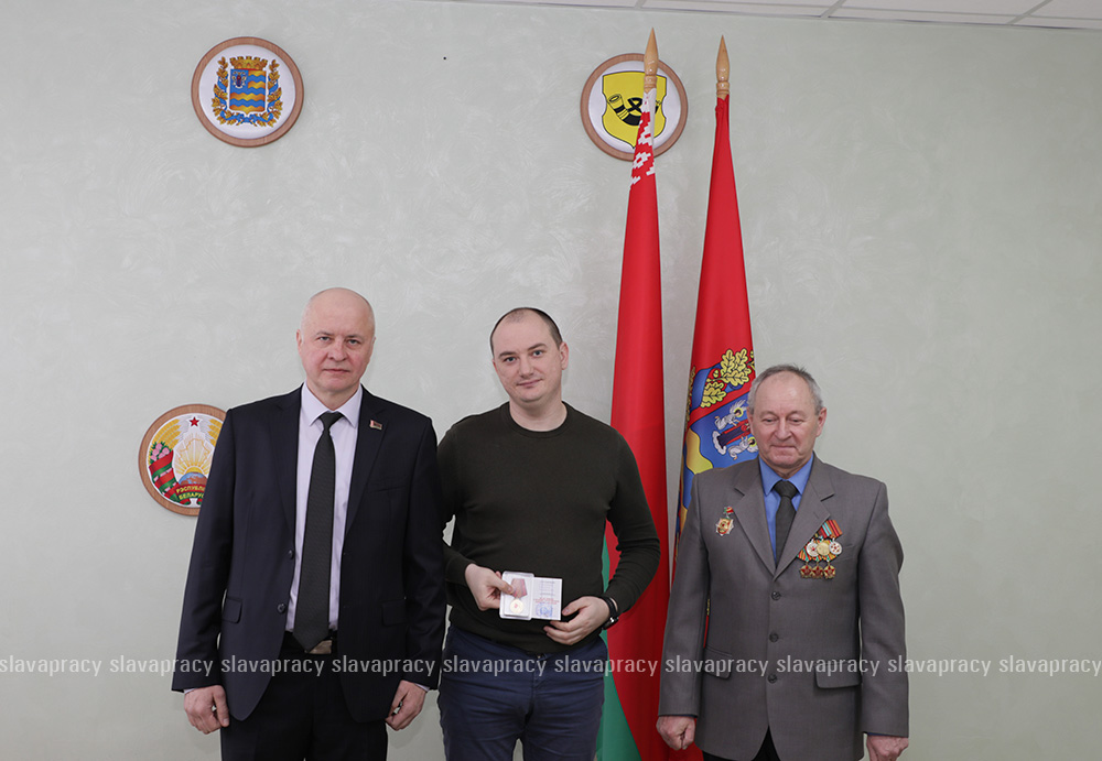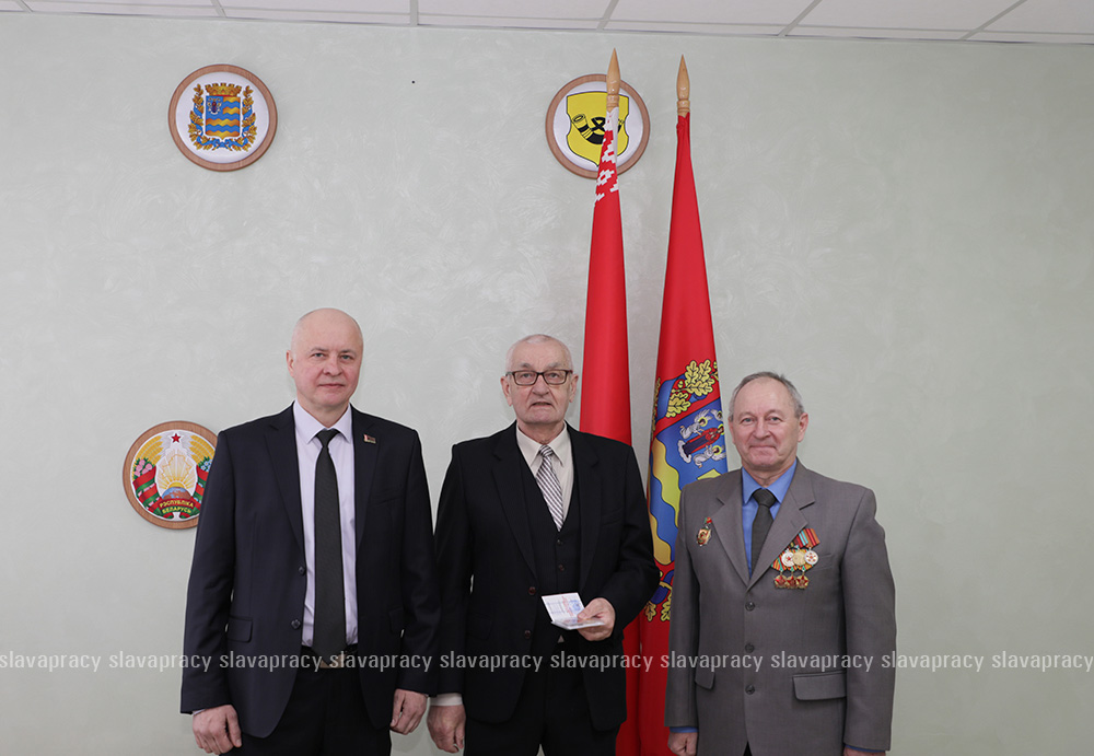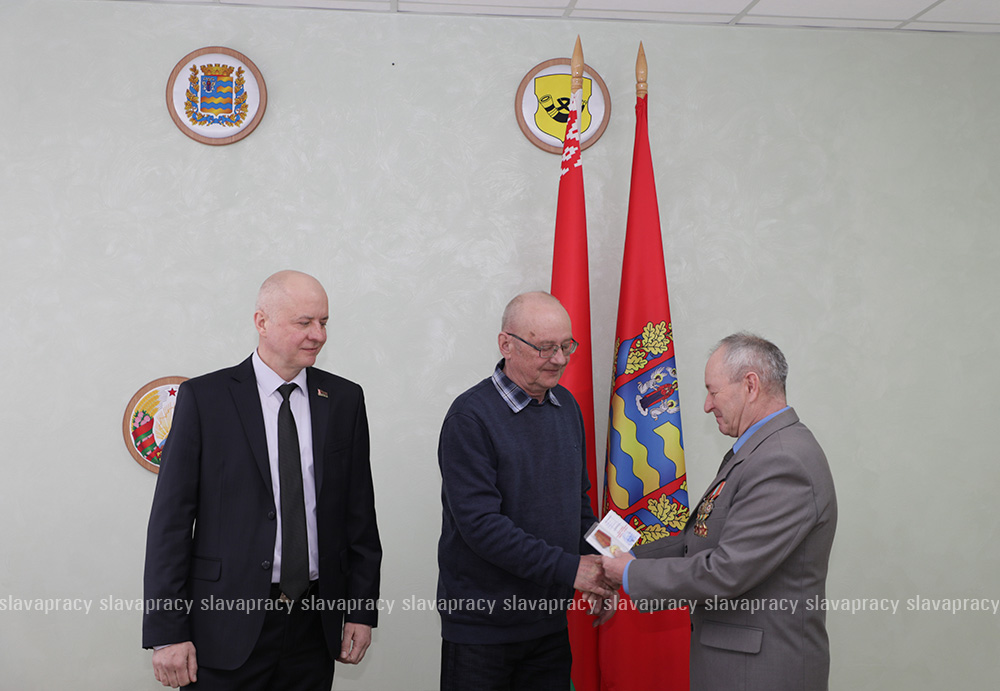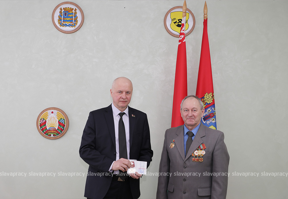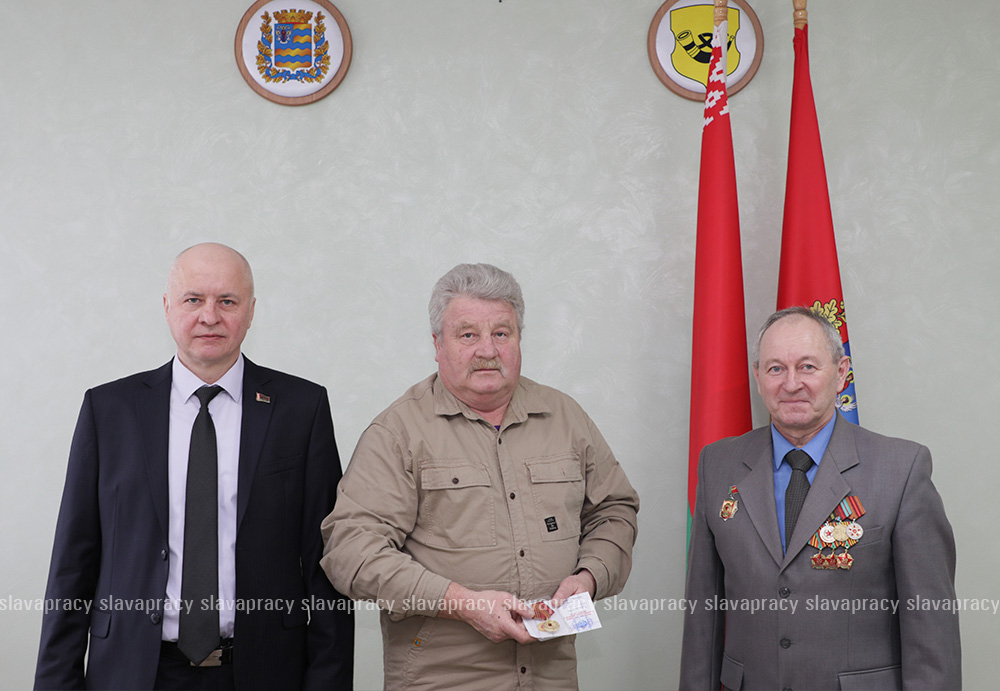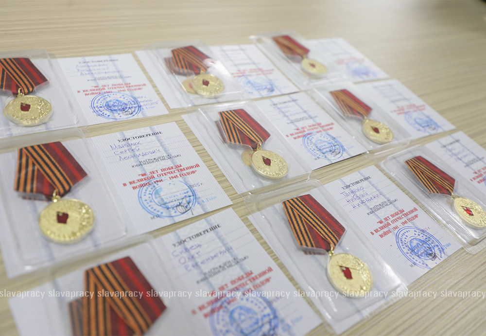 Председатель организации Борис Денисюк и его заместитель Евгений Сивец вручили активистам БСО юбилейную медаль «80 лет Победы в Великой Отечественной войне 1941–1945 годов».