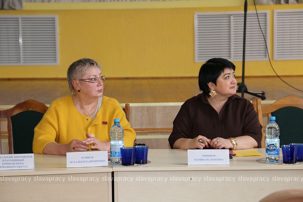Продолжился форум торжественной частью. С приветствием выступили заведующий сектором по работе с руководящими кадрами отдела координации методической работы центра развития дополнительного образования взрослых ГУО «Академия образования» Марина Мишнева и соучредитель Ассоциации школ России и Беларуси, директор ГУО «Гимназия № 1 г. Минска имени Ф. Скорины» Наталия Бушная. В церемонии открытия мероприятия участие также приняли начальник управления по образованию и спорту Копыльского райисполкома Елена Карпович и благочинный Копыльского церковного округа протоиерей Сергий Чарный.