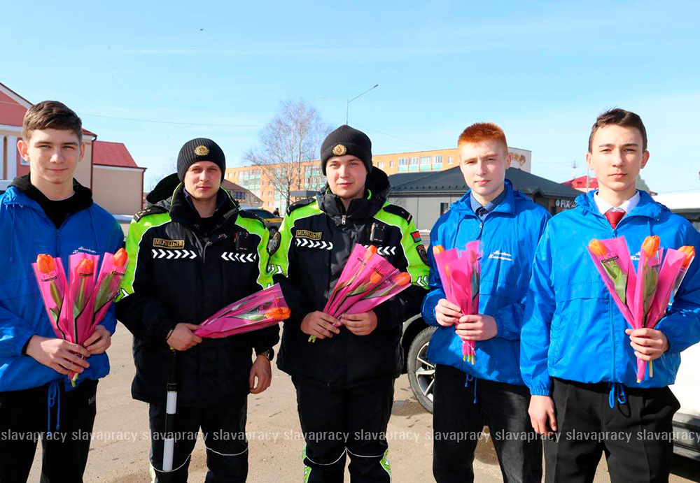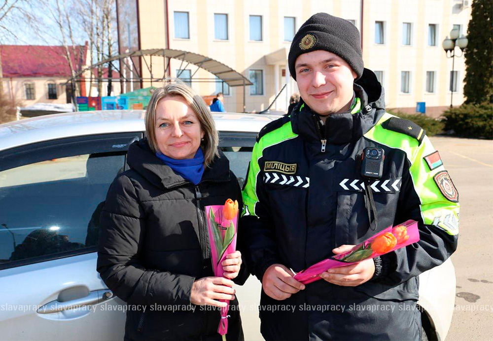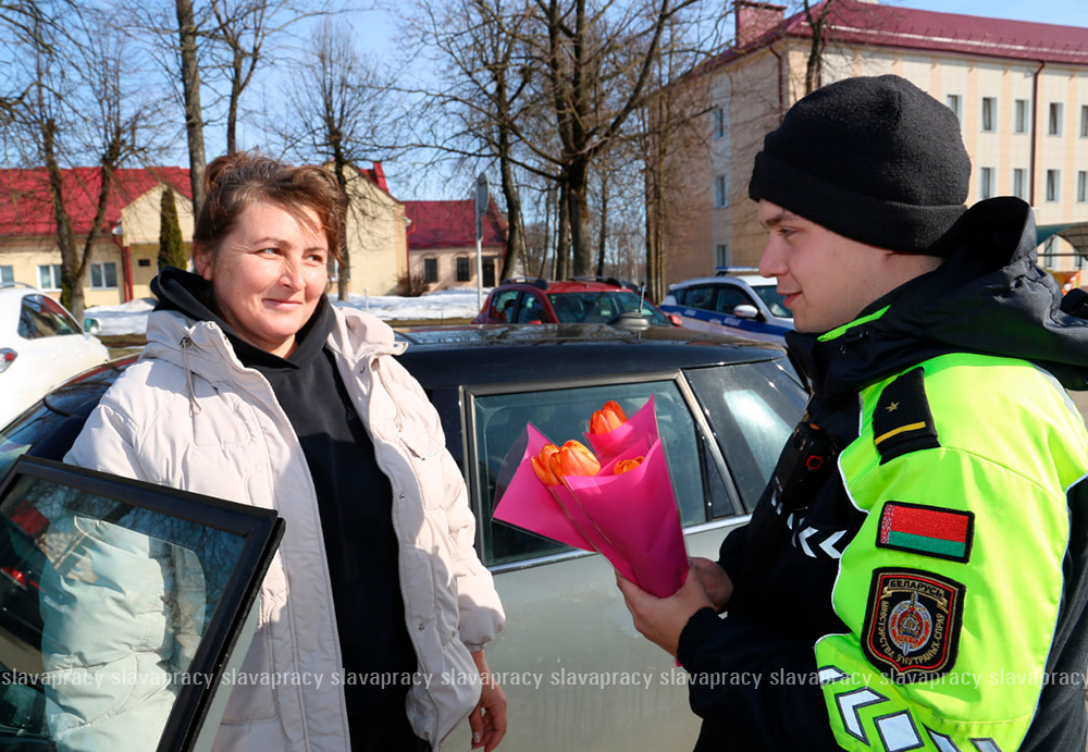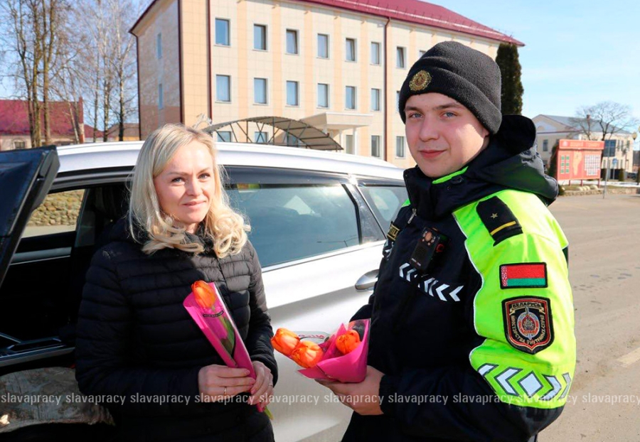 В ходе совместной акции «Цветочный патруль» вместо протоколов и штрафов автоледи получали весенние цветы и искренние пожелания безопасности на дорогах.