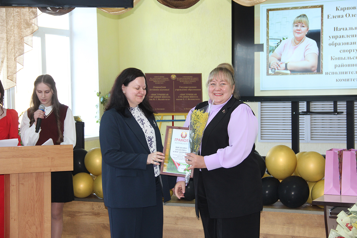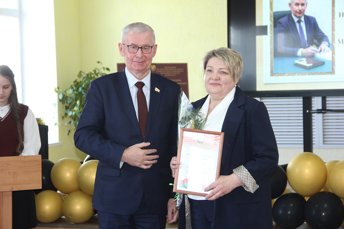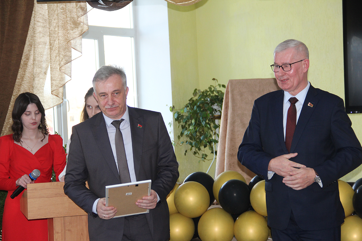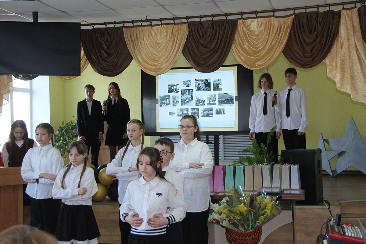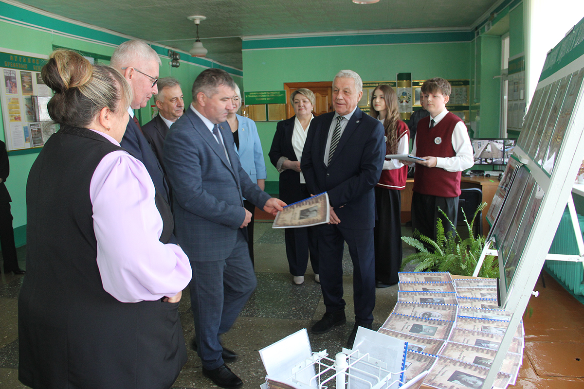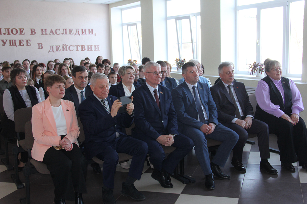 По традиции хлебом-солью встречали почетных гостей – председателя Копыльского райисполкома Сергея Пилищика, начальника главного управления по образованию Мин облисполкома Николая Башко (по чьей инициативе и было присвоено имя), сына Волнистого Евгения Гавриловича – Геннадия. Для гостей провели экскурсию по школе: рассказали о системе патриотического воспитания и показали обновленные экспозиции музея боевой и трудовой славы. Особое внимание привлекли стенды «Их имена в истории Победы. Педагоги Копыльщины» и «Мы помним». Также был представлен каталог материалов о земляках – в нем собрана информация о тех, чьи судьбы опалила Великая Отечественная. Кульминацией дня стало открытие мемориальной доски в честь знаменитого земляка. Дата выбрана неслучайно: 3 марта Евгению Гавриловичу Волнистому исполнилось бы 100 лет. Его жизненный путь – от солдата Советской Армии до начальника отдела образования Минского облисполкома – действительно можно назвать учебником мужества и служения Отчизне. Почетные гости поздравили педагогов и учащихся с тем, что школа обрела имя за служенного земляка. Теперь оно будет вдохновлять новые поколения. На протяжении всего торжества музыкальны ми номерами радовали педагоги и учащиеся Быстрицкой СШ.