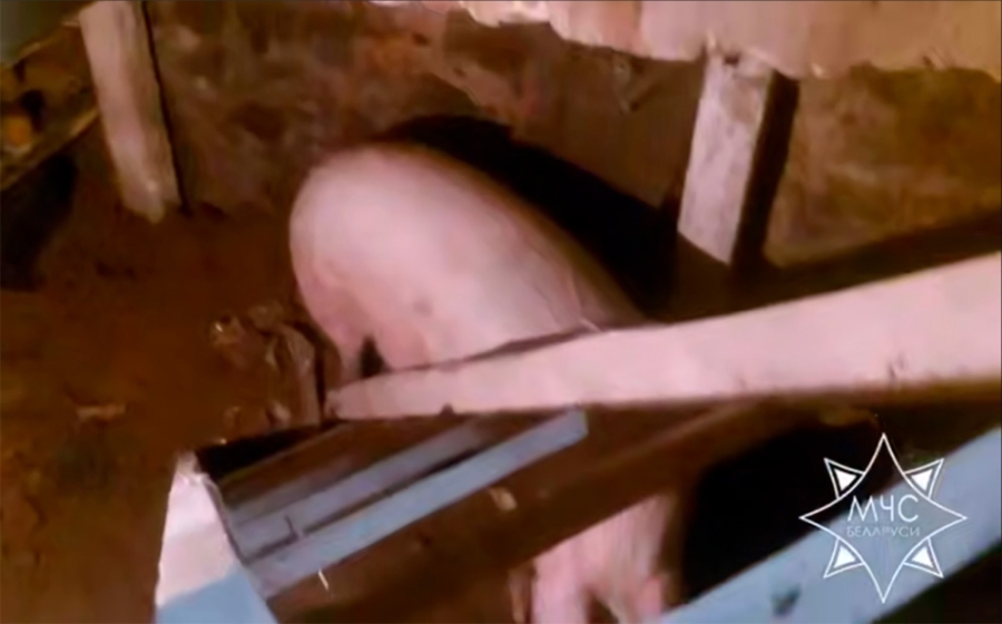 Вчера вечером спасателям поступило сообщение от мужчины: в деревне Мозоли свинья провалилась в погреб глубиной 1,5 метра.