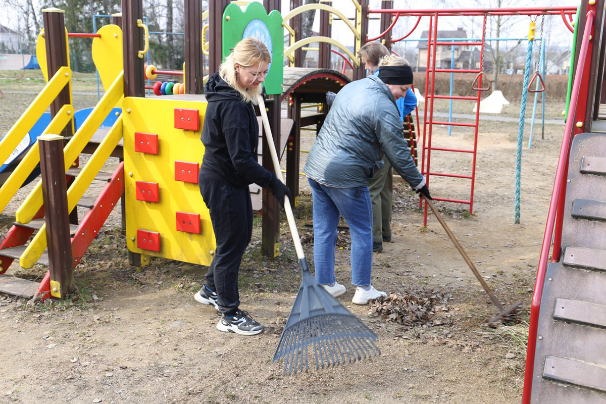 Многие работники приводили в порядок территории, прилегающие к административным зданиям, а также детские площадки.