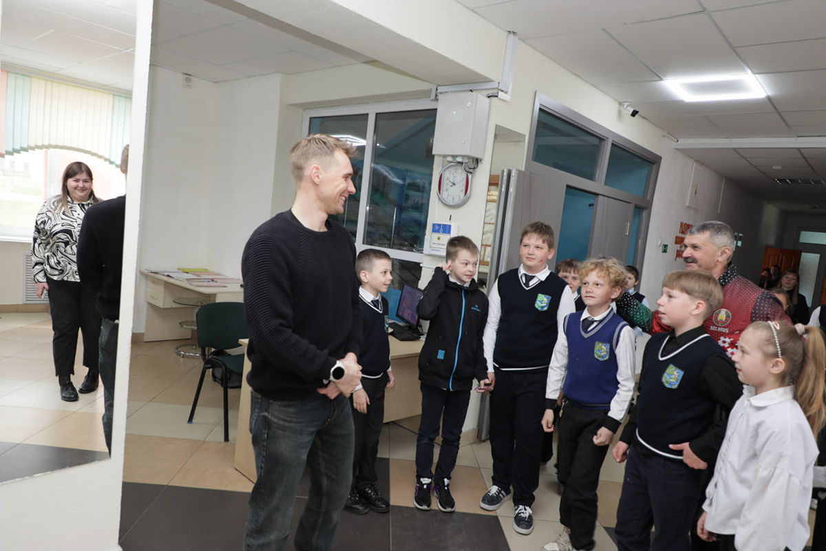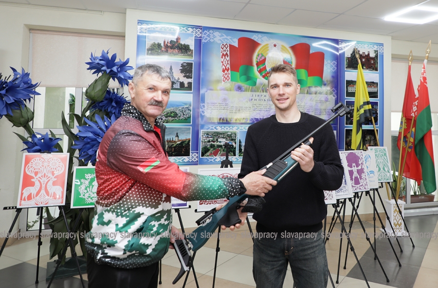 Антон приехал в СШ №2 г. Копыля, где когда-то учился сам. И сделал то, что по-настоящему важно для юных спортсменов - передал в пользование своему первому тренеру Анатолию Сенюку биатлонную винтовку для занятий с учащимися школы.